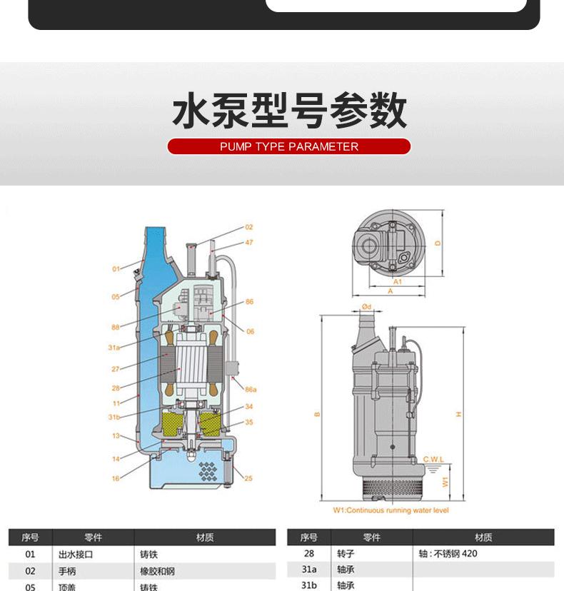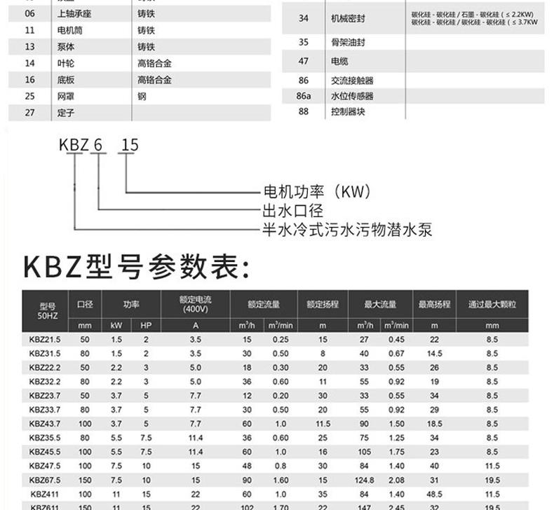 Bomba de aguas residuales marinas Kbz22.2 de 440 V, sumergible, para obras de construcción, para lodos