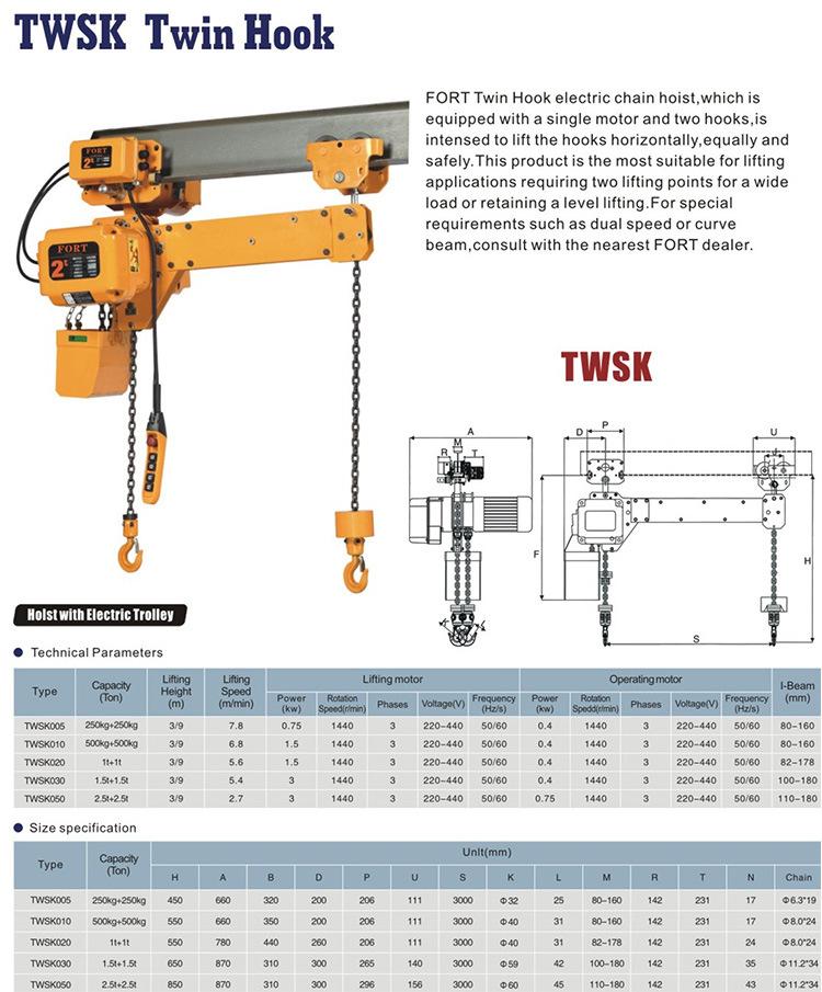 Los fabricantes producen un nuevo polipasto eléctrico de cadena equilibrado de doble gancho de 2 toneladas.