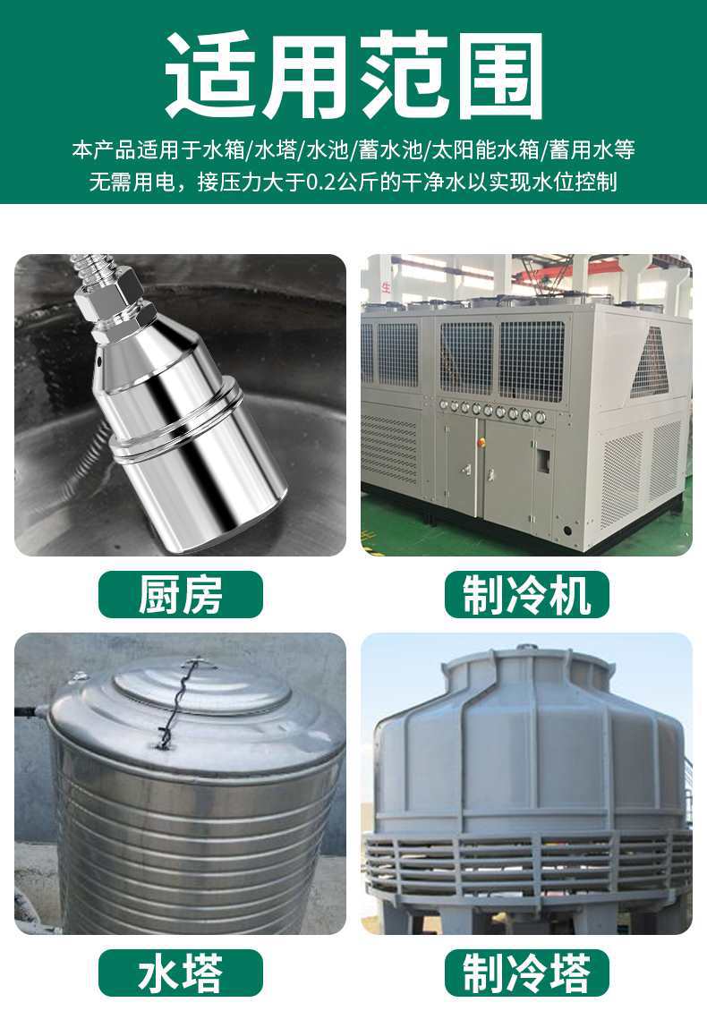 Válvula de flotador de acero inoxidable con parada automática de agua, controlador de nivel de agua, válvula de control de parada automática de agua para torre de agua