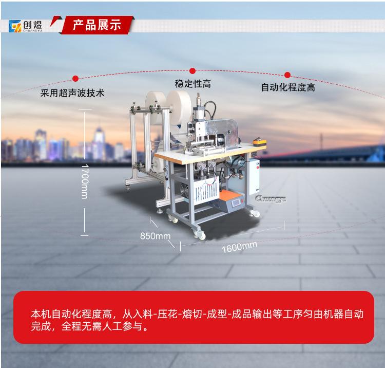 Los principales productos de Chuangyu son:Serie de equipos de filtración y protección industrial, serie de máquinas para máscaras de protección laboral, serie de corte de cuerdas y cinturones de ropa, serie de corte compuesto, serie ultrasónica
