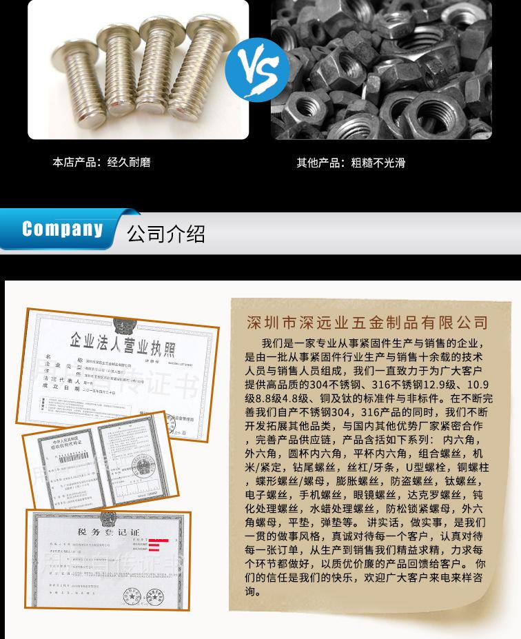 Tornillos Shenyuan Industry】Somos una empresa especializada en la producción y venta de sujetadores. Estamos compuestos por un grupo de técnicos y personal de ventas que se han dedicado a la producción y venta de sujetadores durante más de 20 años. Nos hemos comprometido a proporcionar a los clientes piezas estándar y no estándar de alta calidad de acero inoxidable 201, acero inoxidable 304, acero inoxidable 316, grado 12.9, grado 10.9, grado 8.8, grado 4.8, cobre y titanio. Mientras mejoramos continuamente nuestros productos de acero inoxidable 304 y 316 de producción propia, continuamos desarrollando y expandiendo otras categorías y mejorando la cadena de suministro de productos.
