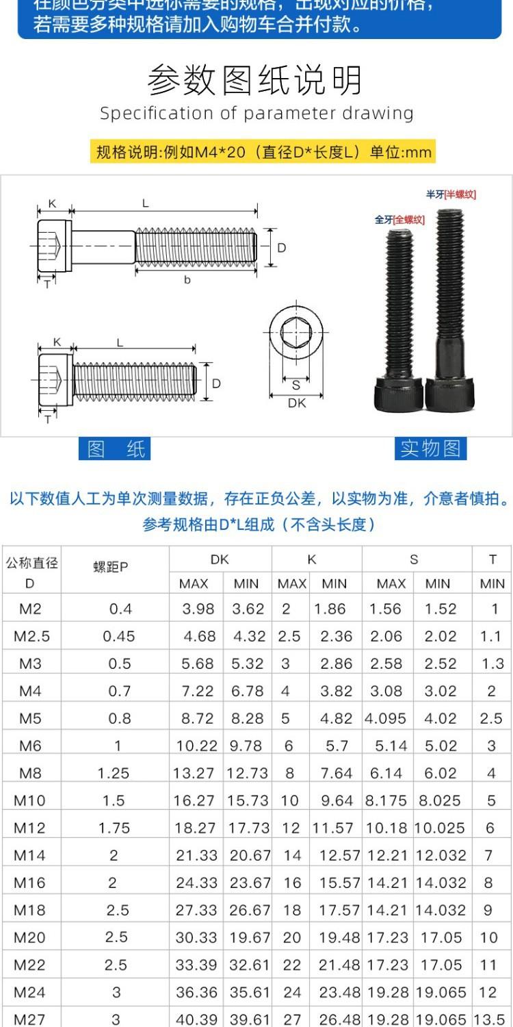 [M3-M4] Grado 12.9 Tornillo de Cabeza Cilíndrica con Hexágono Interior Tornillo de Cabeza de Copa Perno con Hexágono Interior M3 * 4/5/6/50