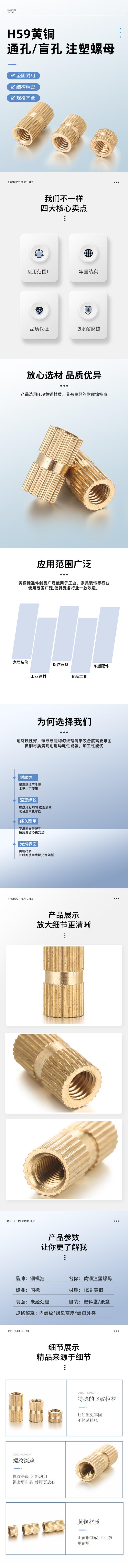 [M6] GB809 H59 Tuerca de inserción de moldeo por inyección de fusión en caliente recta de latón con orificio pasante, tuerca anti-desgaste de grano vertical incrustada