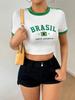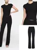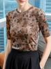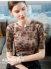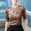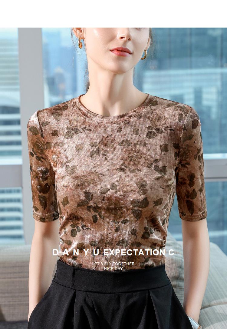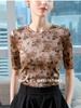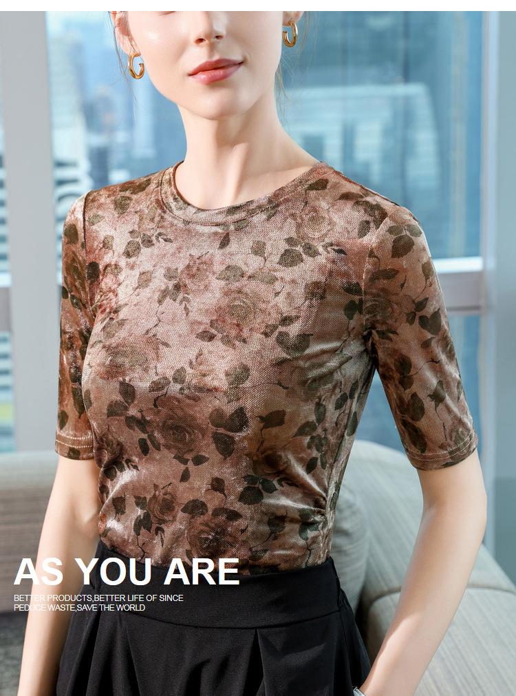 Camiseta de media manga para mujer, otoño 2024, nueva camiseta básica con cintura plisada y estampado para mujer, top de manga corta ligero y lujoso de alta gama.