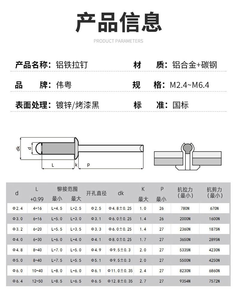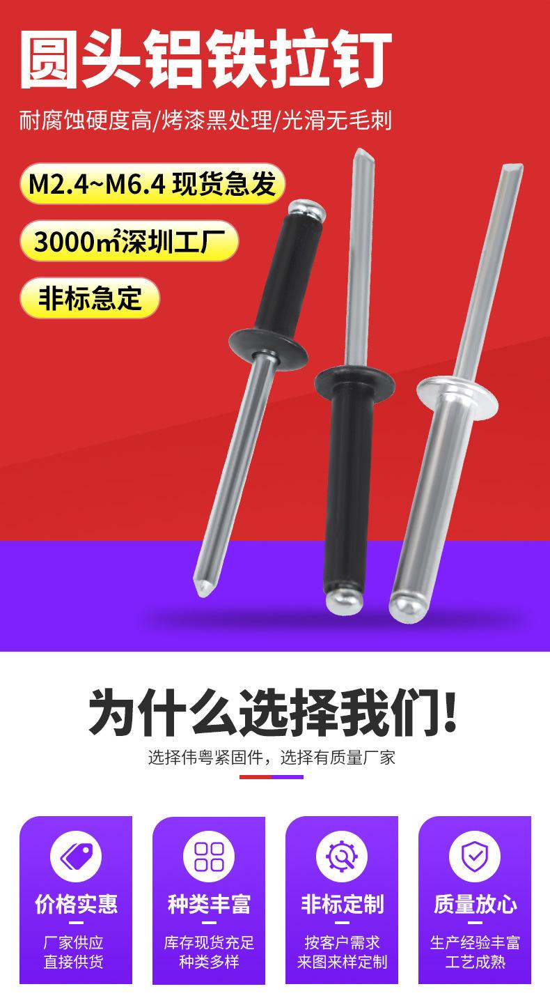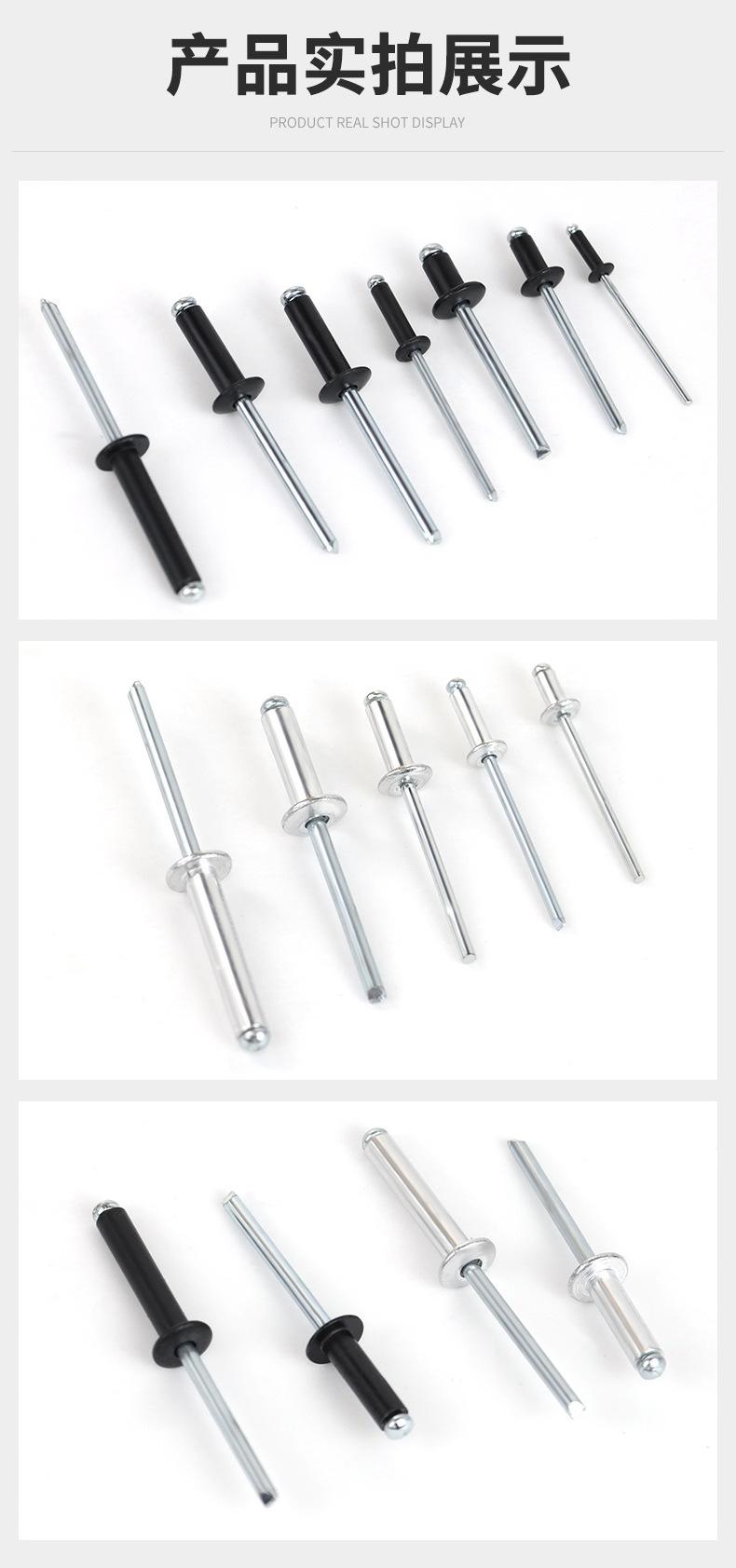 Clavos de tracción de aluminio hierro al por mayor aleación de aluminio puertas y ventanas fijas galvanizado cabeza redonda pintura negra remache ciego M2.4-M6.4