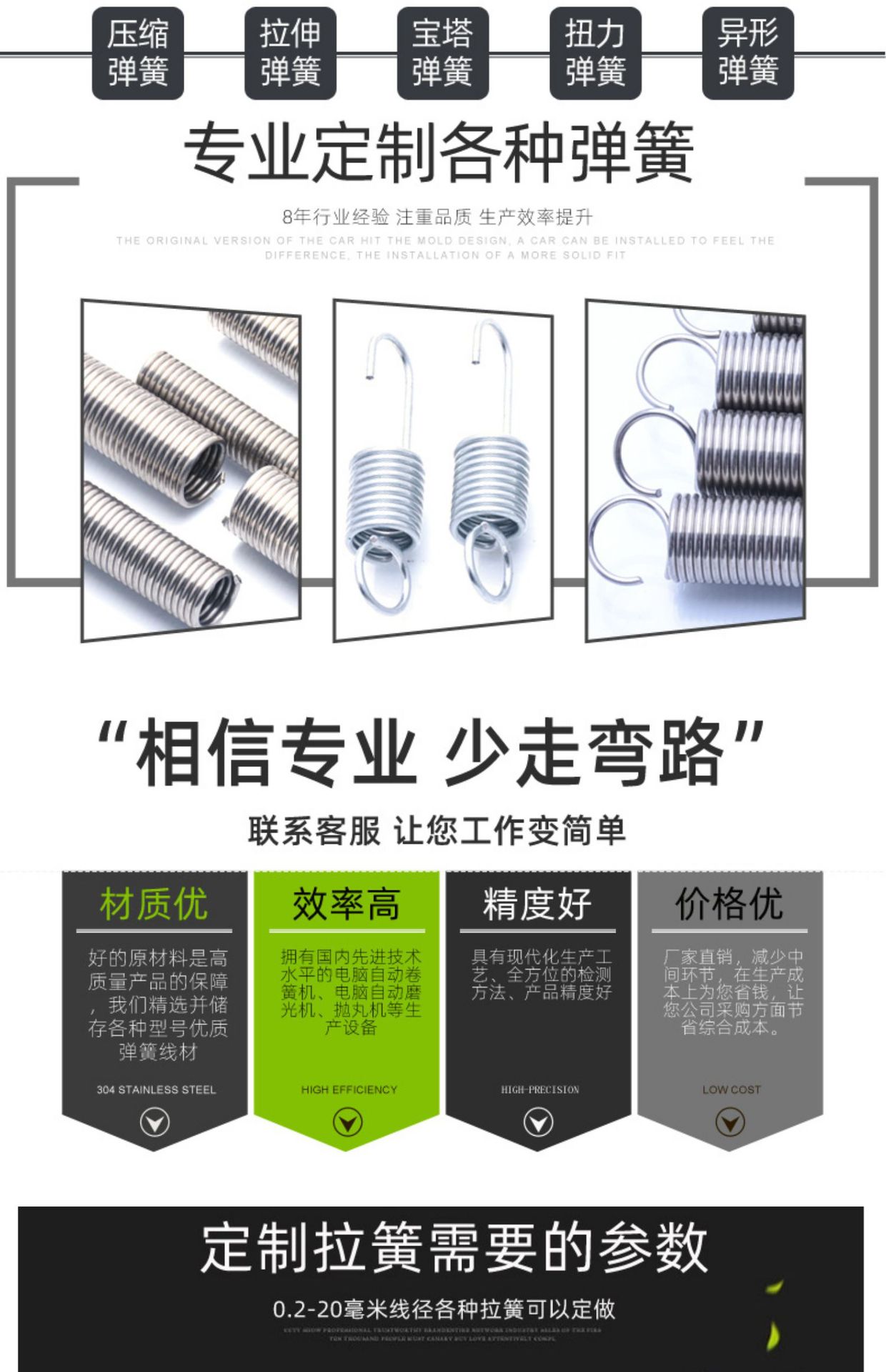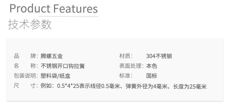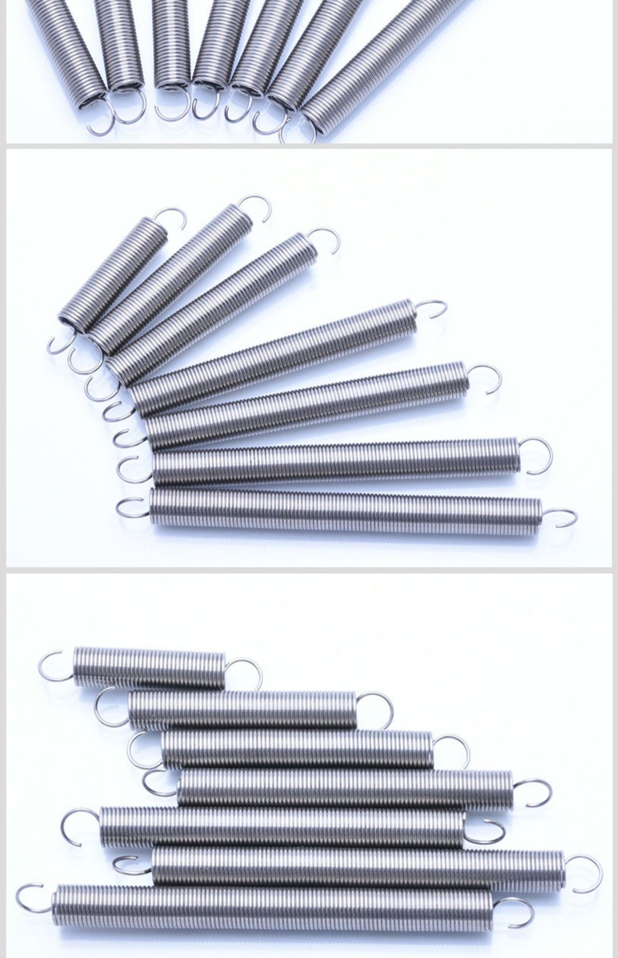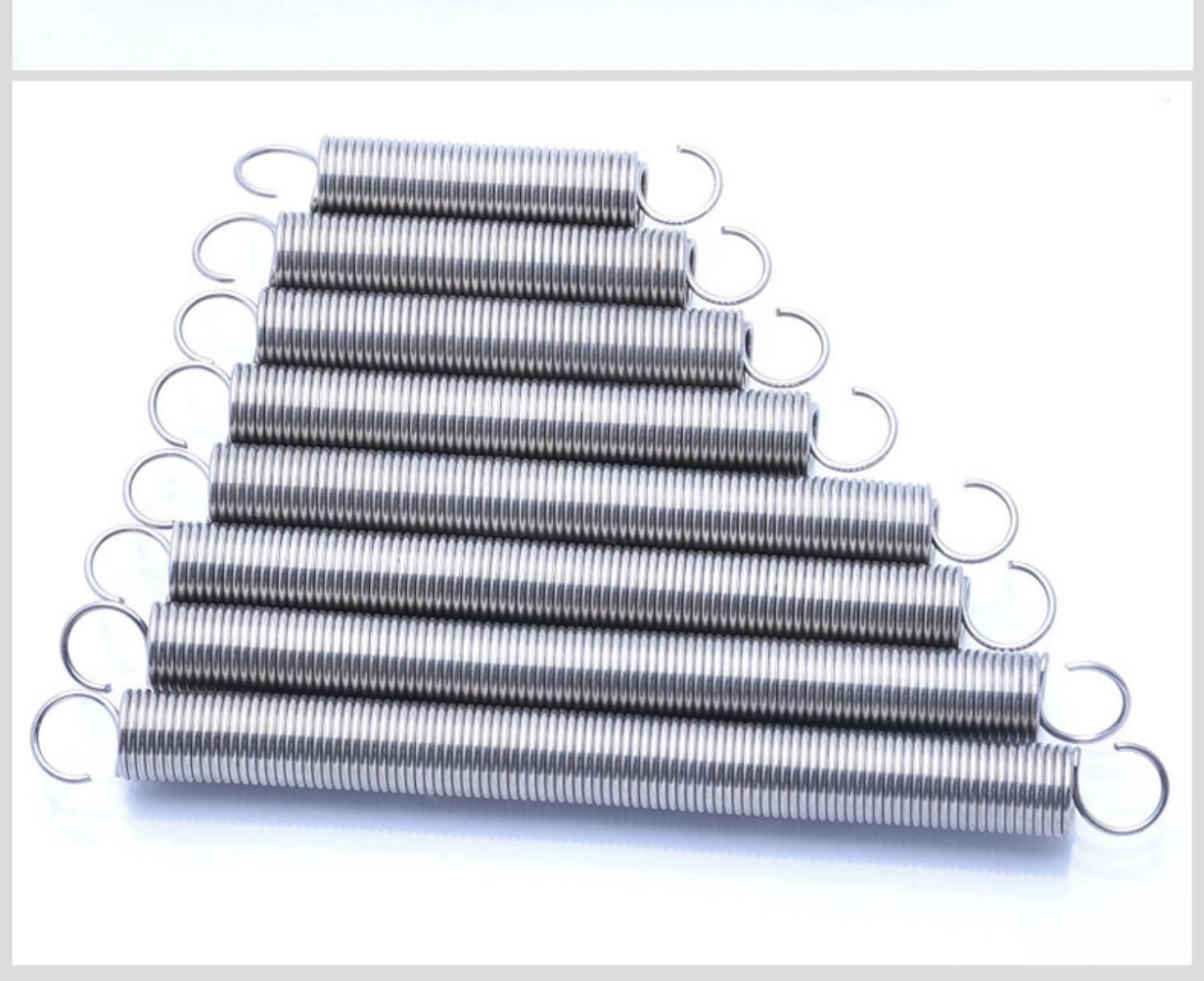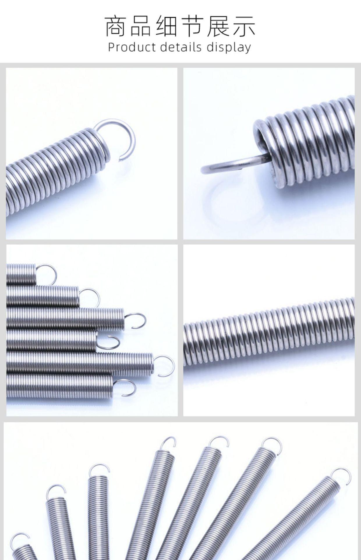 Resorte de tensión de tamaño 0,8 x 8 con resorte de gancho Resorte de tensión de acero inoxidable 304 Resorte de tensión de gancho de retorno de tensión