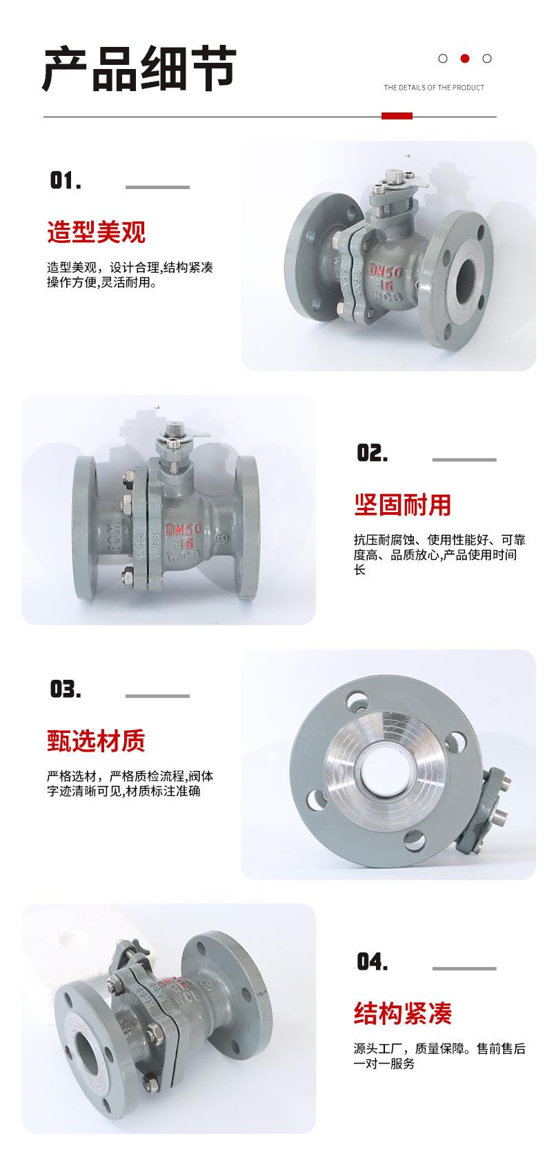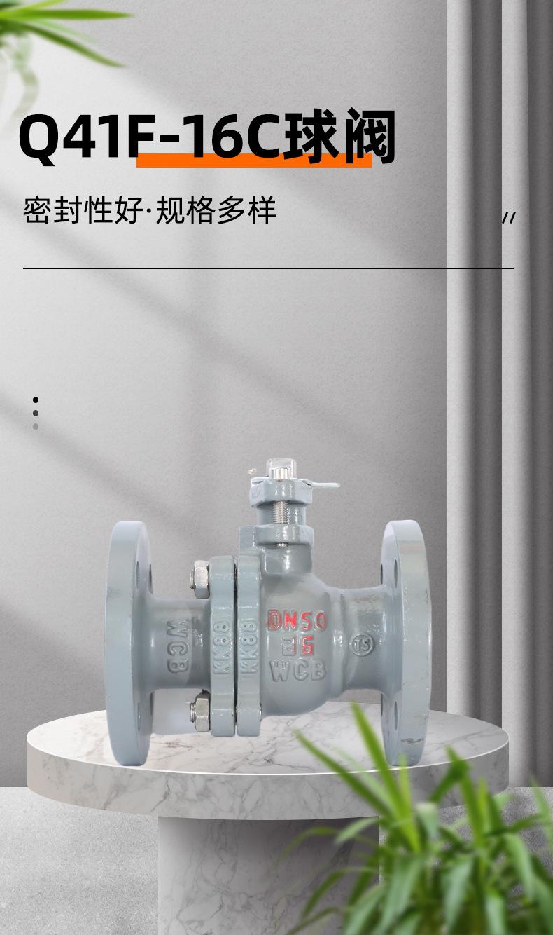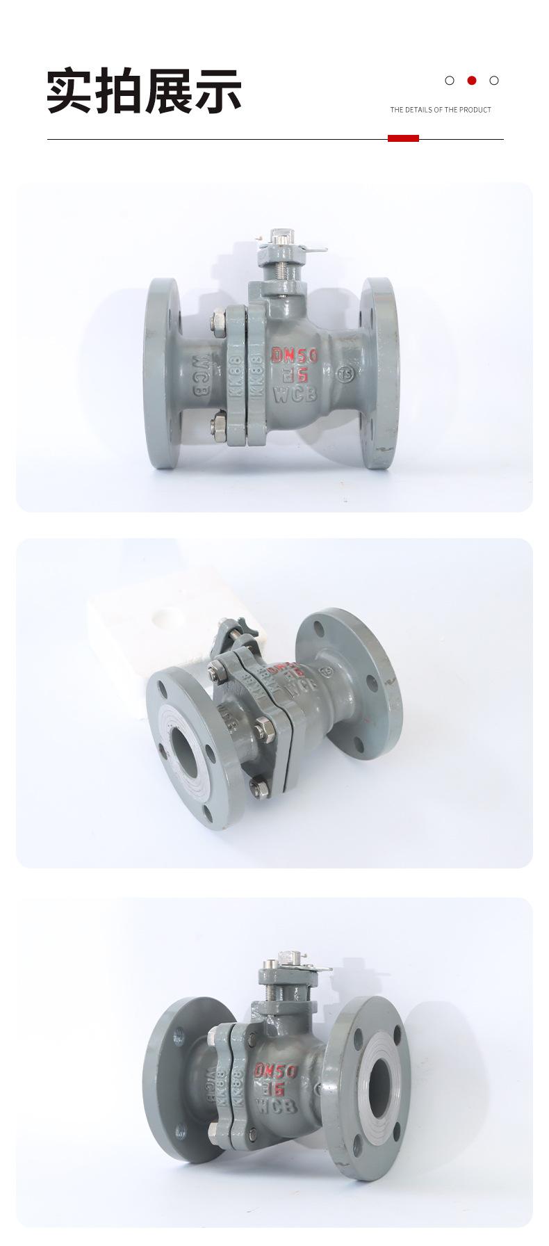 Válvula de bola con brida de acero al carbono y acero fundido, manual, flotante, Q41F-16C, revestida de PTFE, válvula de brida de paso recto