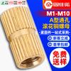 Tuerca de cobre de inyección M3, inserto de cobre termofusible incrustado, latón moleteado, orificio pasante, flor inclinada, tuerca madre M4, pasador de fábrica en stock