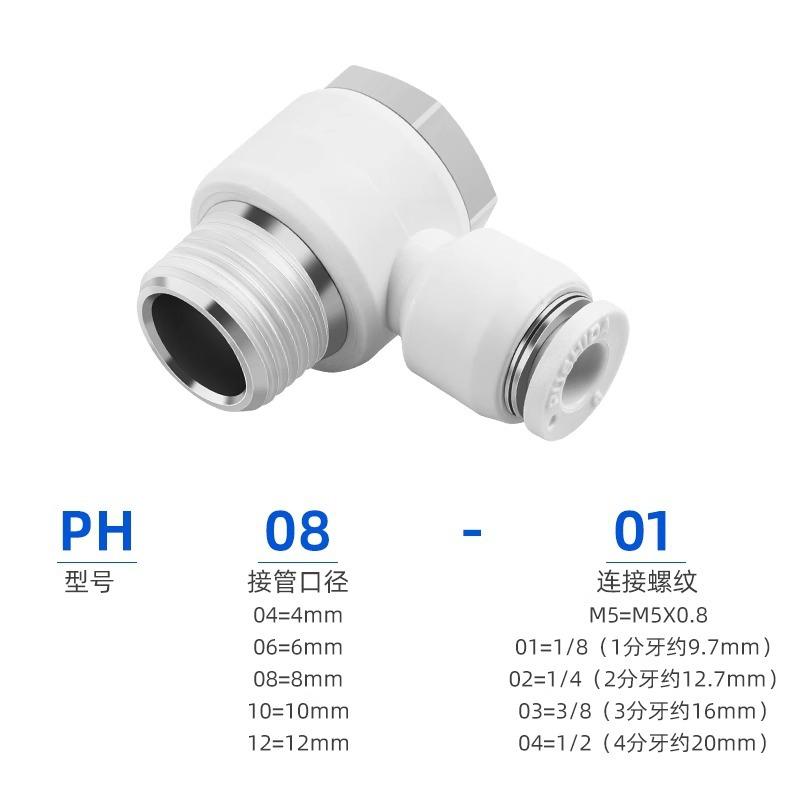 Manguera neumática PH codo rosca hexagonal exterior 4-M5 6-01 8-02 10-03 unión rápida dentada exterior partida