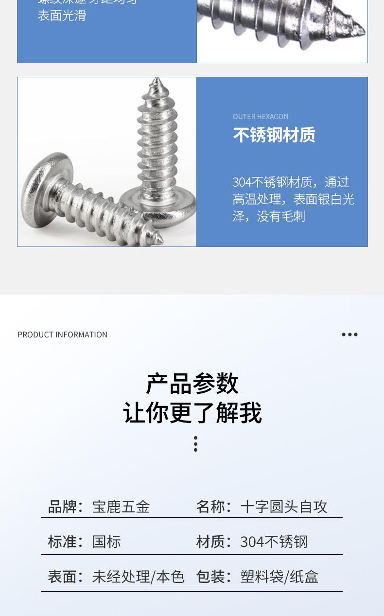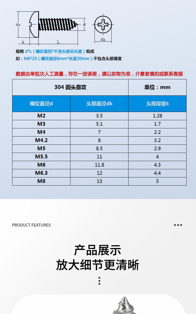 Tornillos para madera M4M8 Pa Tornillos autorroscantes de cabeza redonda en cruz Tornillos autorroscantes de cabeza plana de acero inoxidable 304