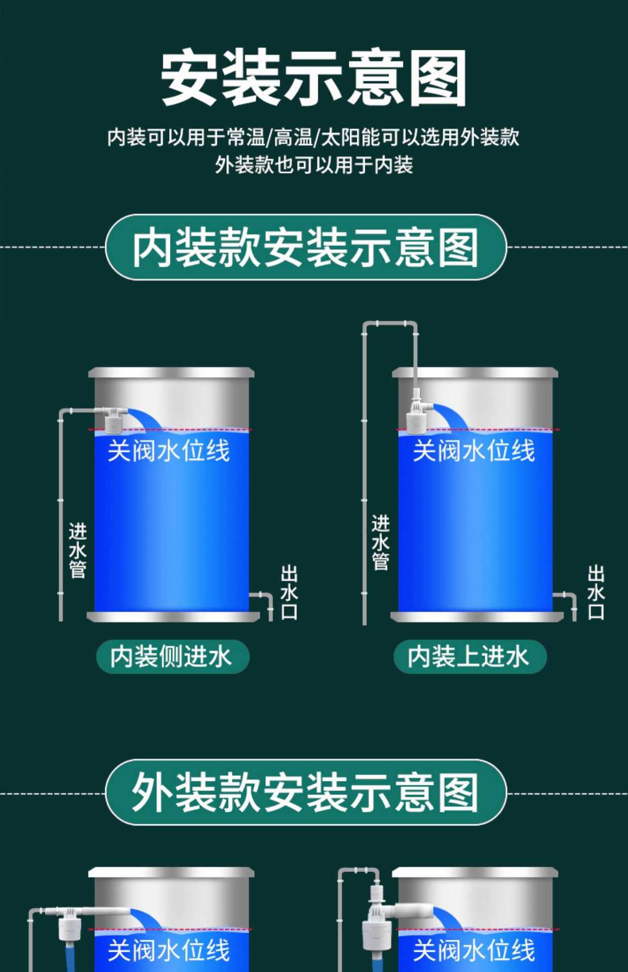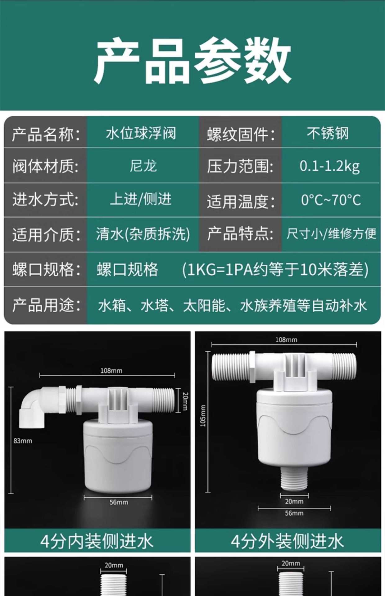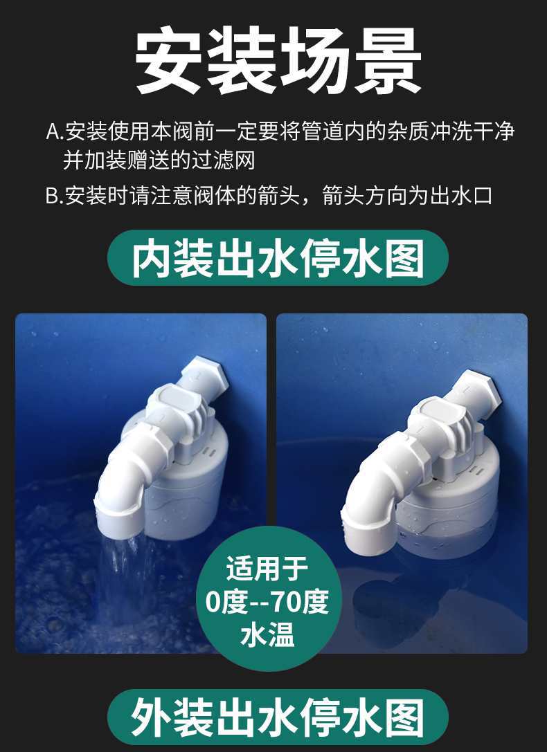 Interruptor de válvula de flotador de plástico para tanque de agua de torre de agua, controlador de nivel de agua automático, válvula de parada de agua, válvula de parada completa de agua