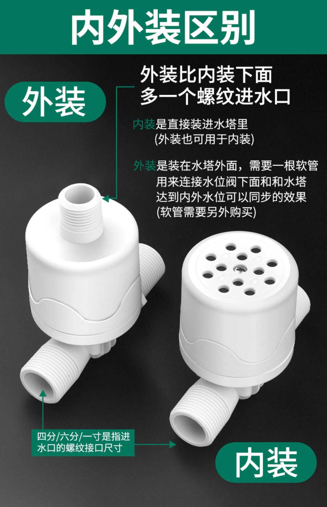 1 inch exterior (side water inlet) 2