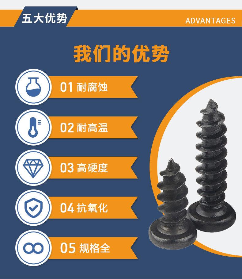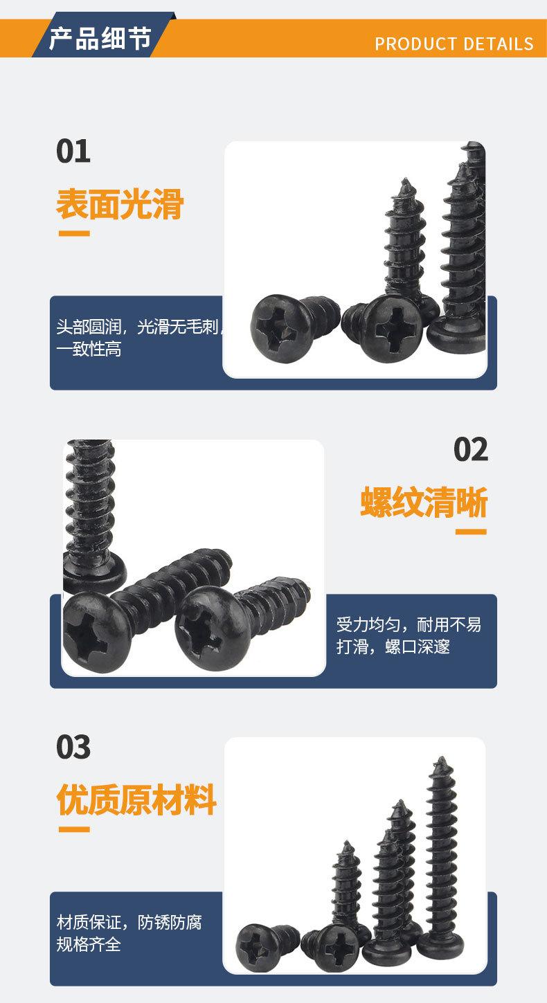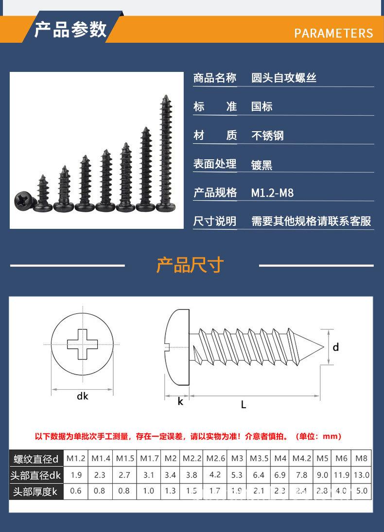 Tornillos autorroscantes de cabeza redonda de acero inoxidable 304, de cabeza plana y cruz negra, accesorios para tornillos pequeños M1.2 M1.4 M2