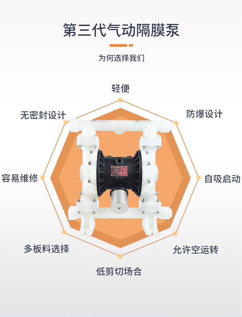 Bomba de Diafragma Neumática Border Goode Qby3-40Stff Plástico de Ingeniería 1.5 pulgadas Bomba Autocebante Resistente a Ácidos y Álcalis y Resistente a la Corrosión