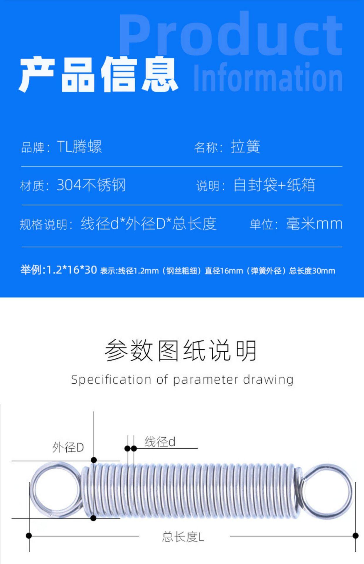 Compra Resorte de tensión 2*17, resorte de tensión de acero inoxidable 304, resorte de tensión, anillo cerrado, tamaño del resorte de tensión al por mayor en Joom.pro
