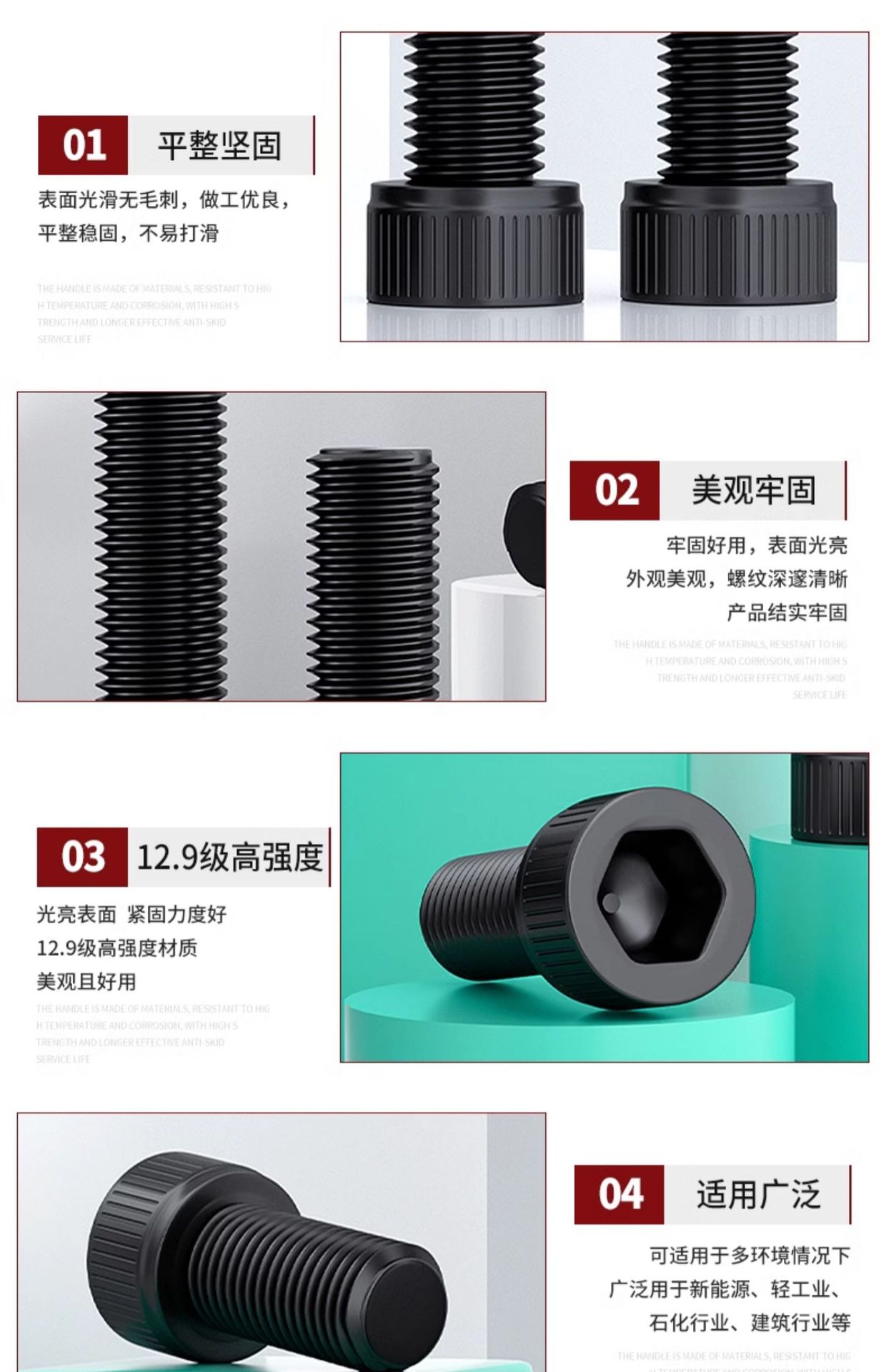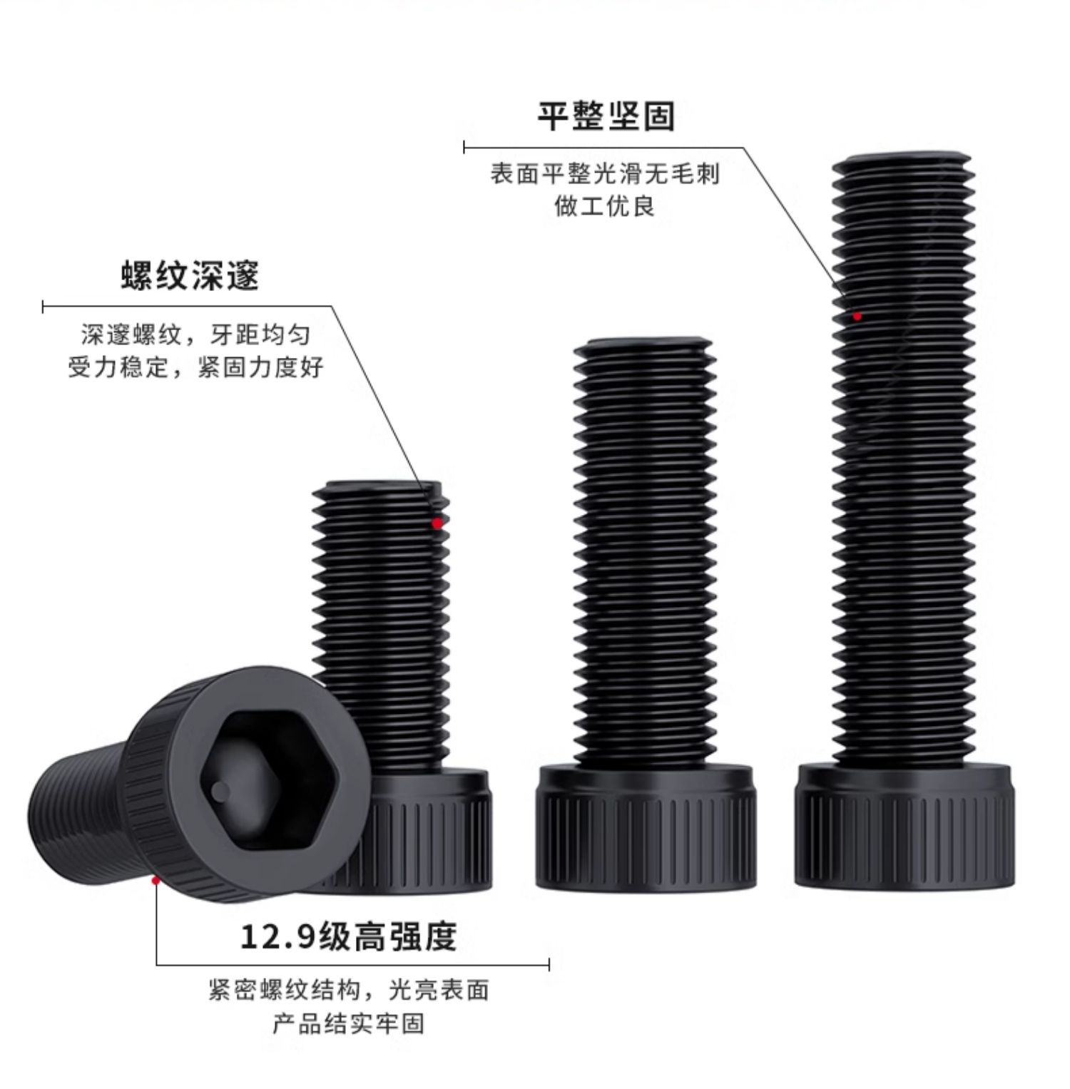 Tornillo de cabeza hueca hexagonal 12,9 de alta resistencia, tornillo de cabeza ahuecada, tornillo de cabeza cilíndrica, diente completo M3M4M5M6M8M10M12