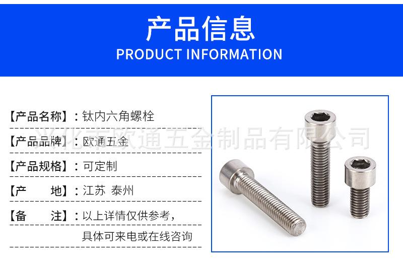 Tornillo hexagonal de cabeza de copa de titanio TA2 titanio puro DIN912 dientes completos hexagonal sin moletear Perno M6-M12