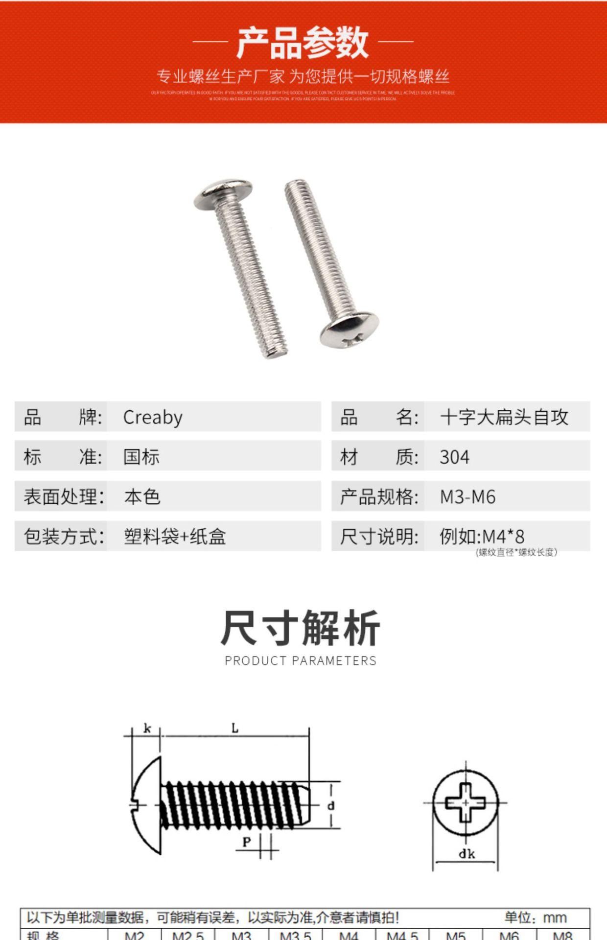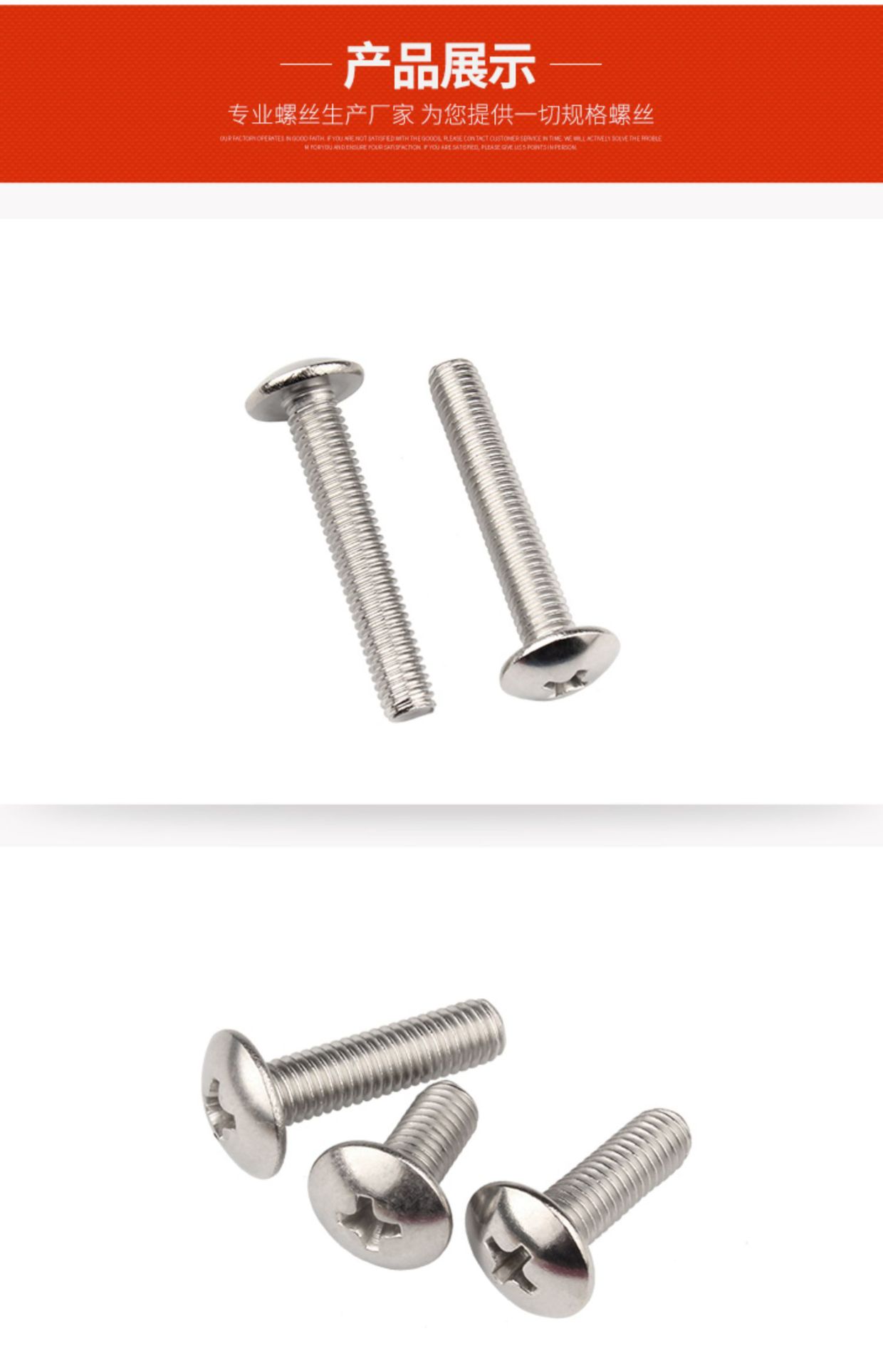 Tornillo de cabeza plana grande de acero inoxidable 304 con forma de cruz, cabeza de paraguas, perno de cabeza redonda, tornillo de alambre tipo hongo M2M3M4M5M6