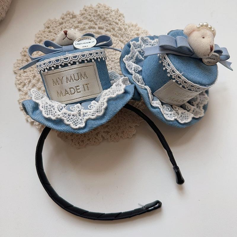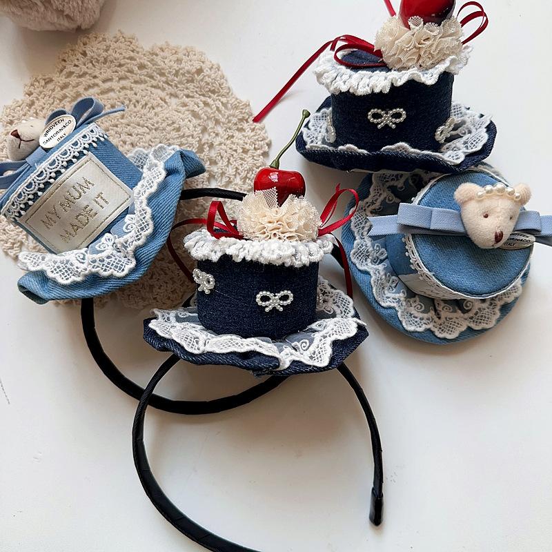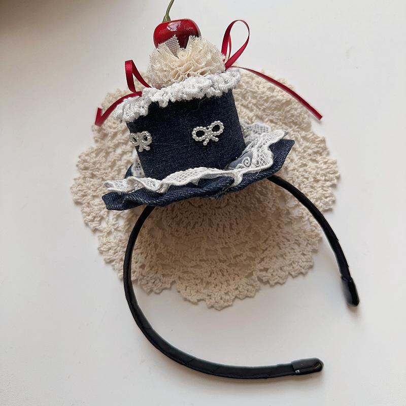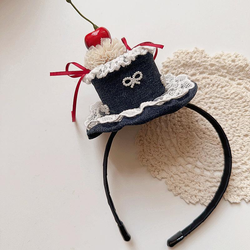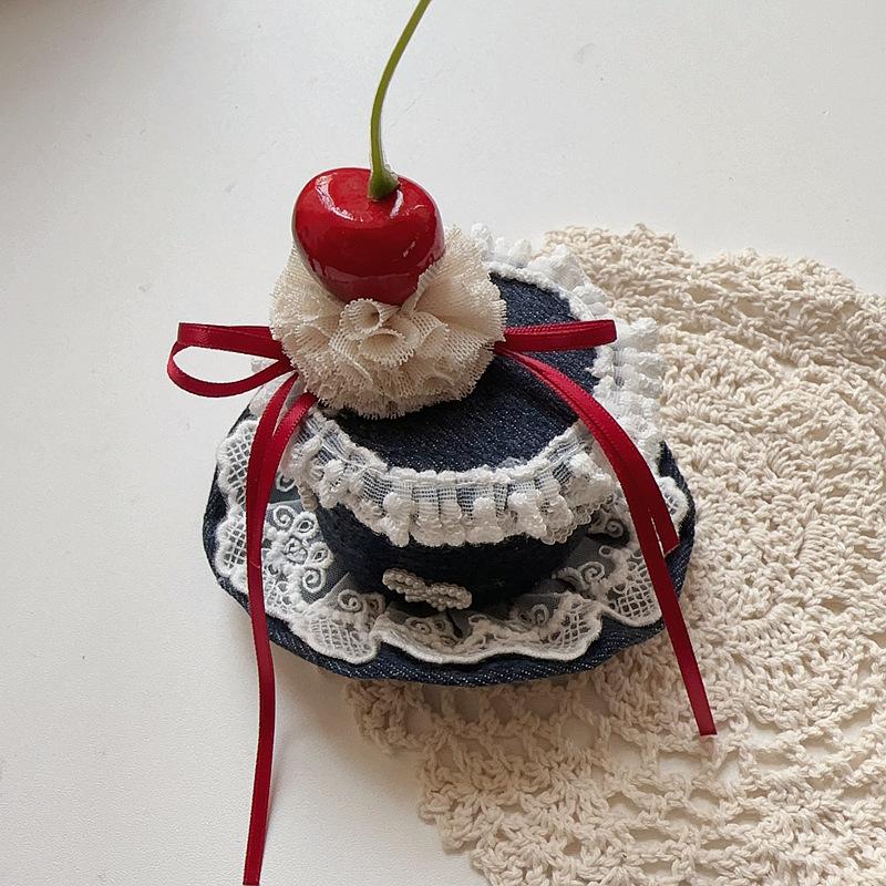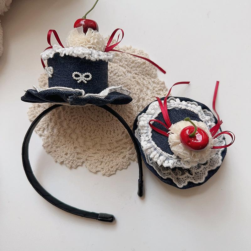 Nuevo gorro de cumpleaños Lolita vintage con encaje de oso y cerezas para niña, con clip superior, diadema, accesorios para el cabello