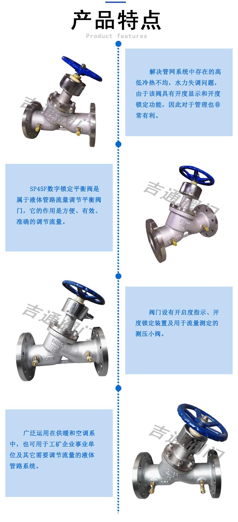 Válvula de equilibrio digital manual de acero inoxidable SP45F-16P, conexión de brida de temperatura y presión normales, material de acero inoxidable