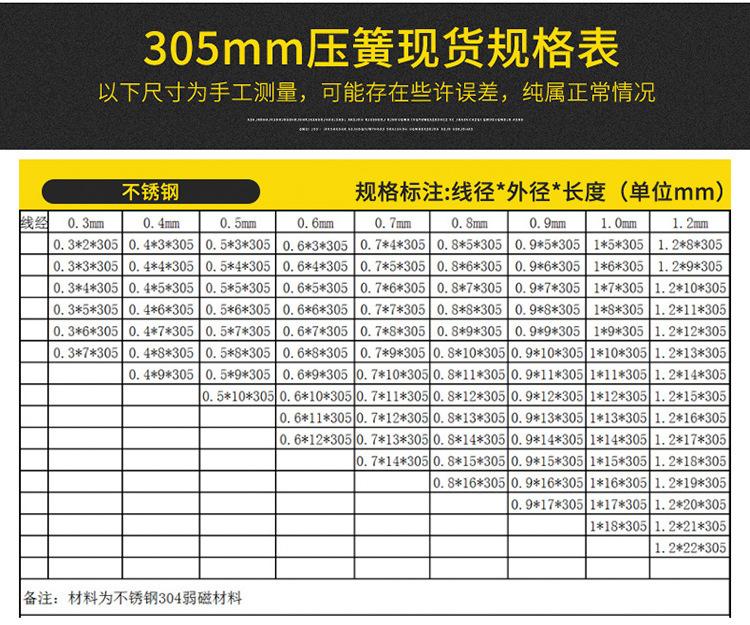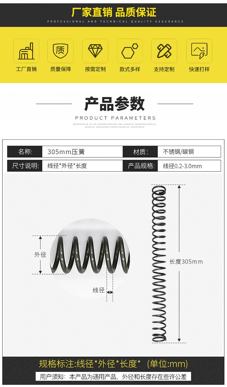 Resorte de compresión de 1,0-1,5 mm, resorte de compresión de hardware, presión de compresión 300, acero inoxidable largo, suave, mecánico, elástico, acero amarillo