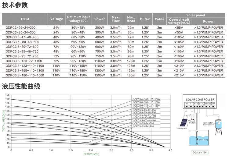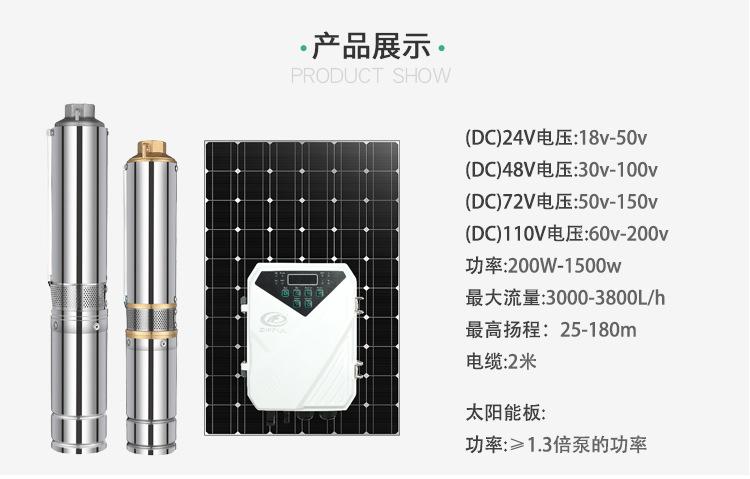 | Bomba sumergible solar de CC de acero inoxidable para pozo profundo, de 48 V, con imán permanente y sin escobillas, para uso doméstico. | |