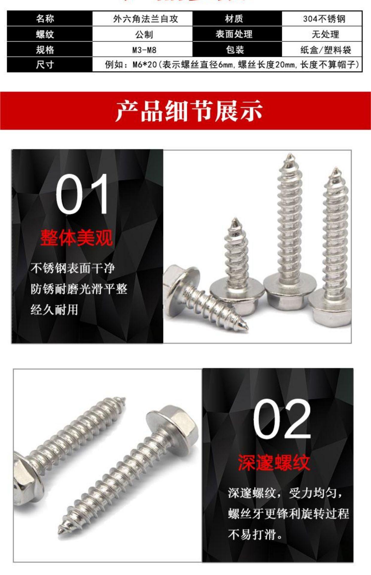 Tornillo autorroscante hexagonal externo con brida cruzada de acero inoxidable 304 y almohadilla, tornillo autorroscante para madera M3M4M5M6M8