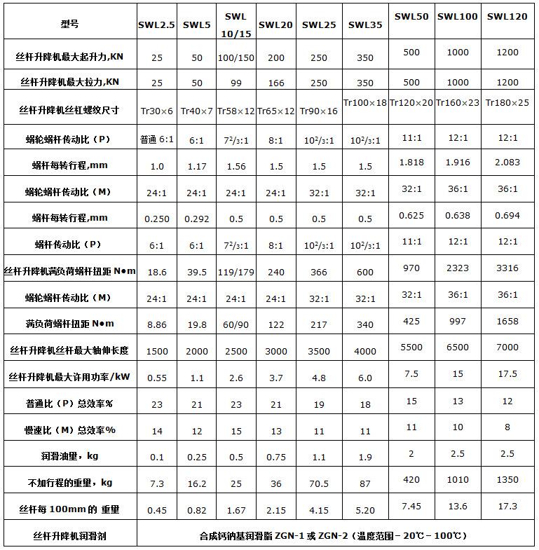 La transmisión de tornillo sin fin del elevador se divide en: relación de velocidad normal (P), relación de velocidad lenta (M) y relación de velocidad media se puede personalizar según los requisitos del usuario.