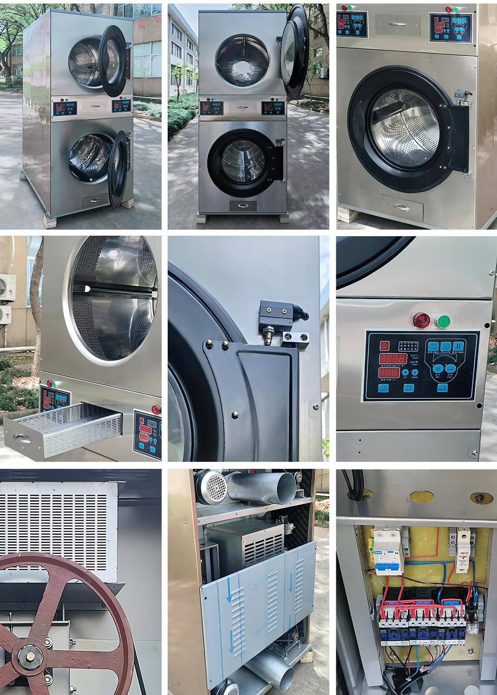 Secadora de Ropa Apilada de Doble Capa 15kg Totalmente Automática Comercial Especial para Lavandería Grande Acero Inoxidable