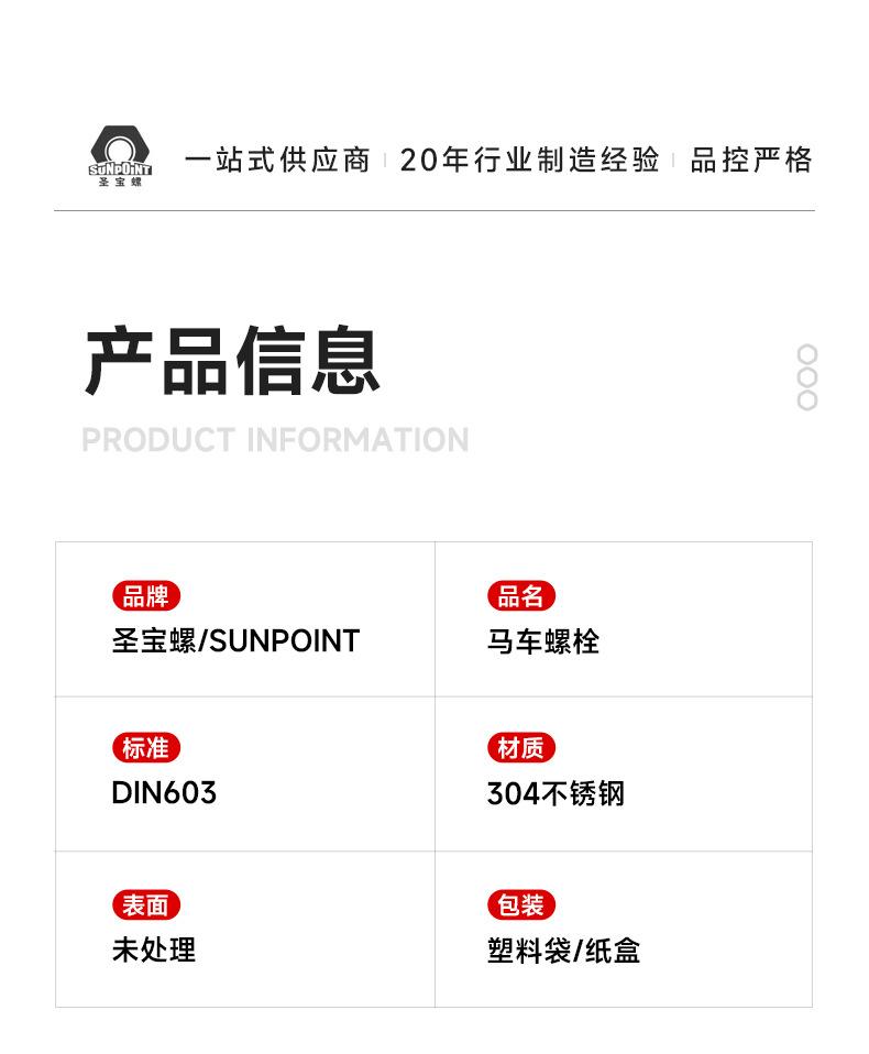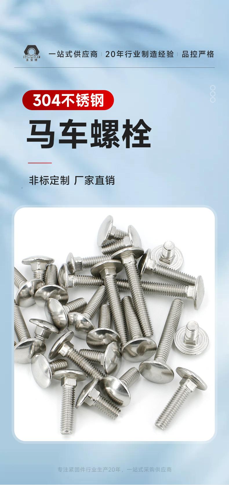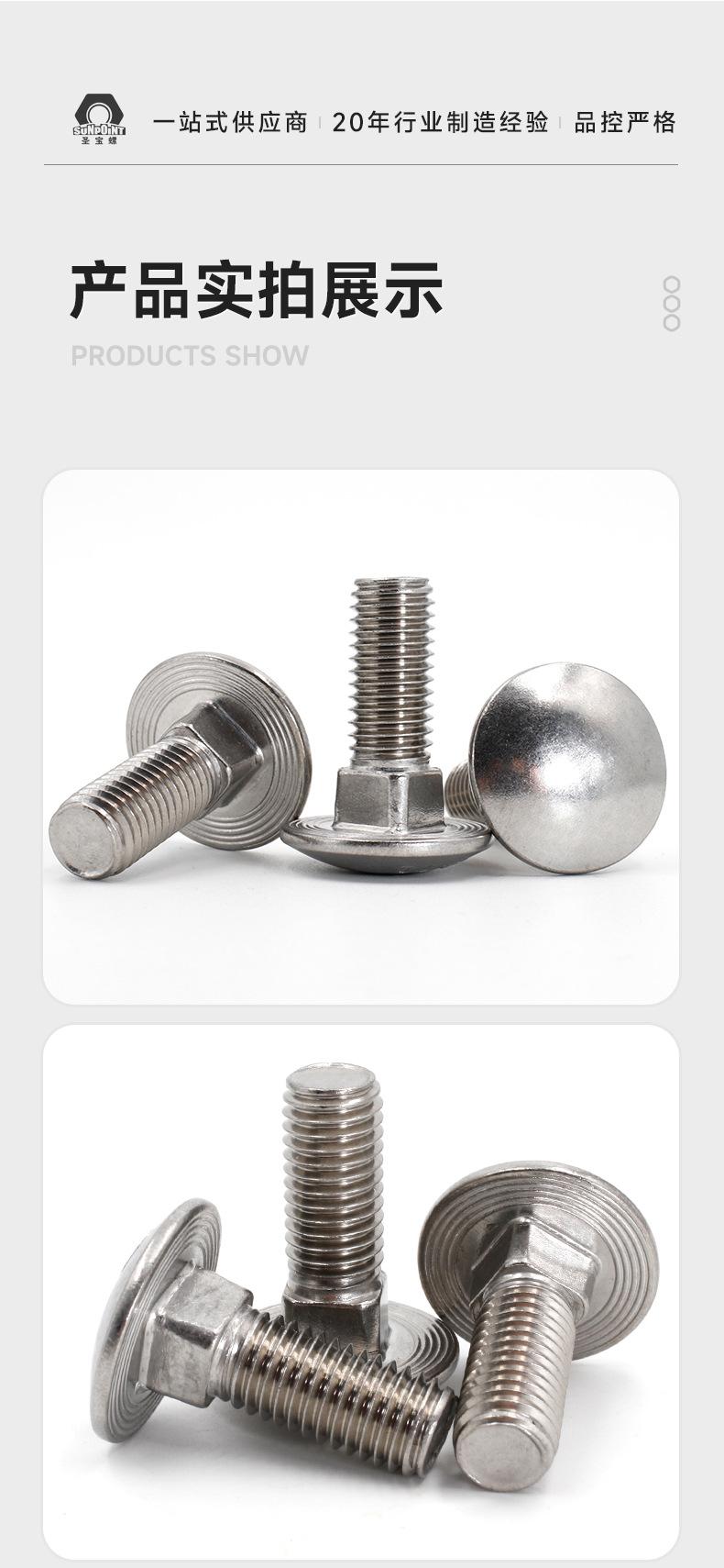 Pernos de carro de acero inoxidable 304 DIN603, tornillos de cabeza semicircular con cuello cuadrado, tornillos de puente, pernos de estante, venta al por mayor