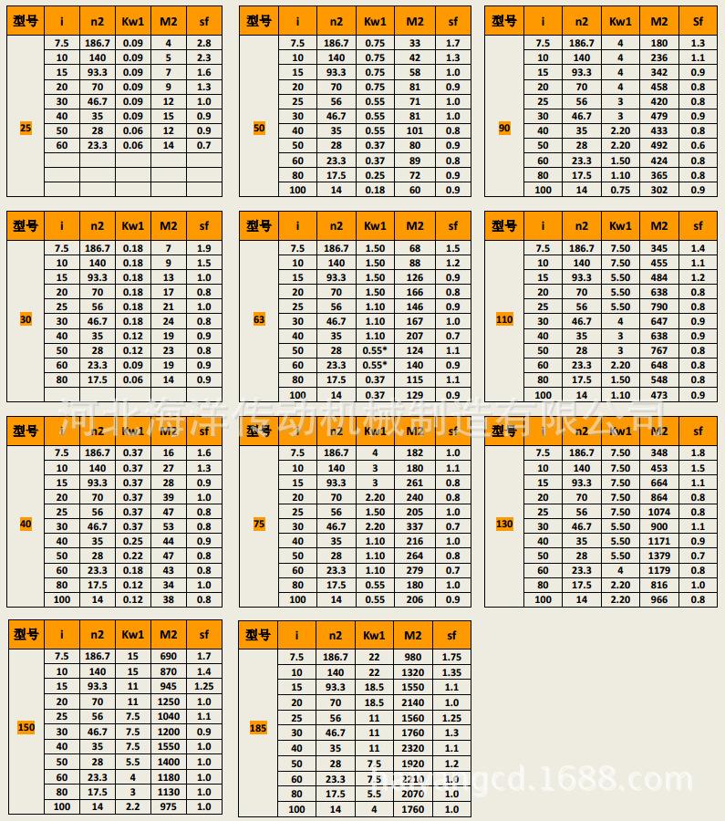 1.Las especificaciones de distancia entre centros del reductor de una etapa son:25、30、40、50、63、75、90、110、130、150、185。