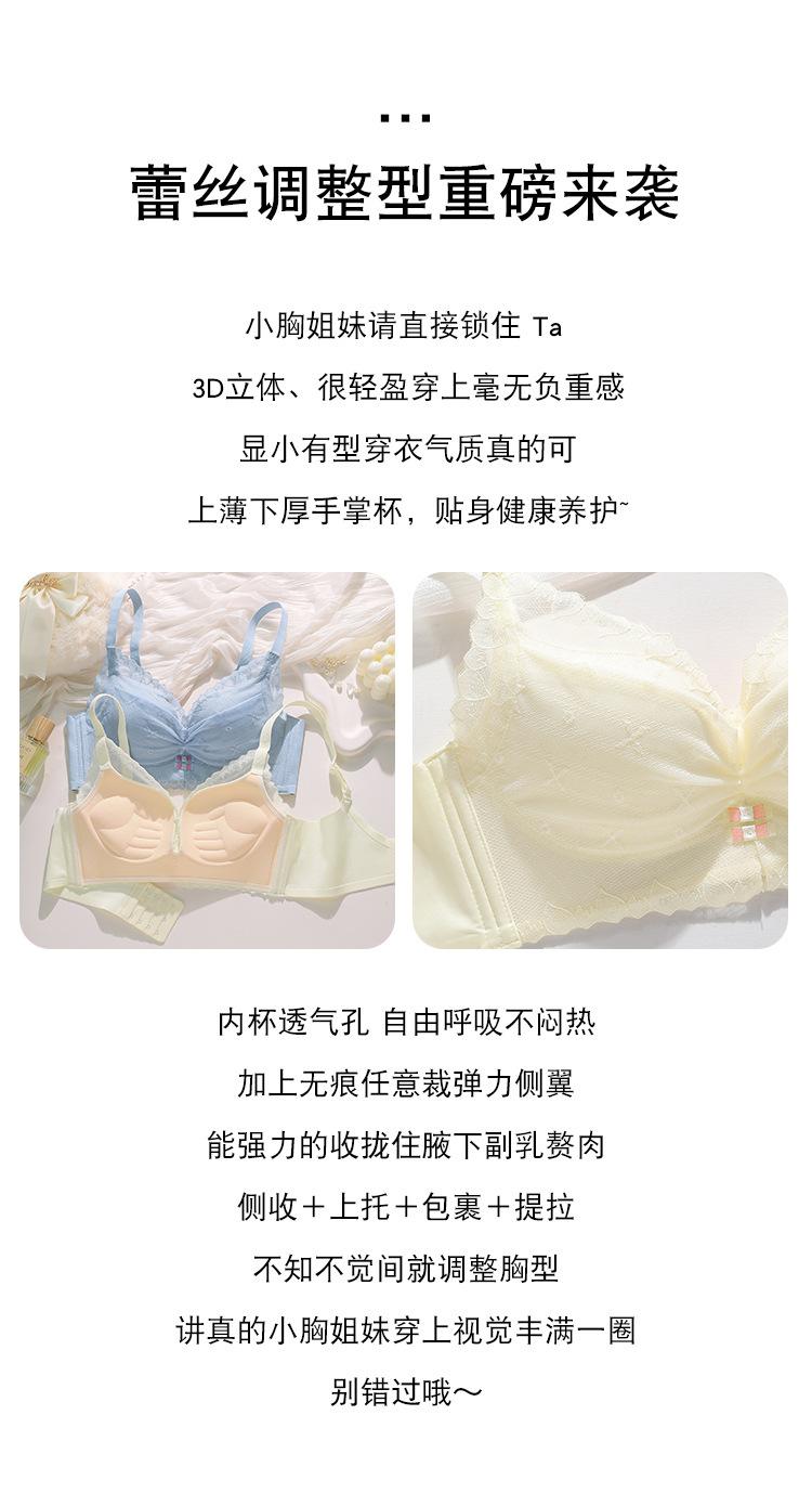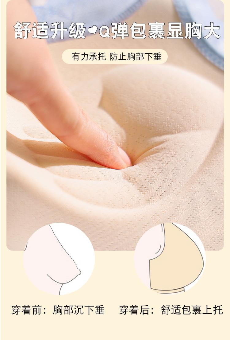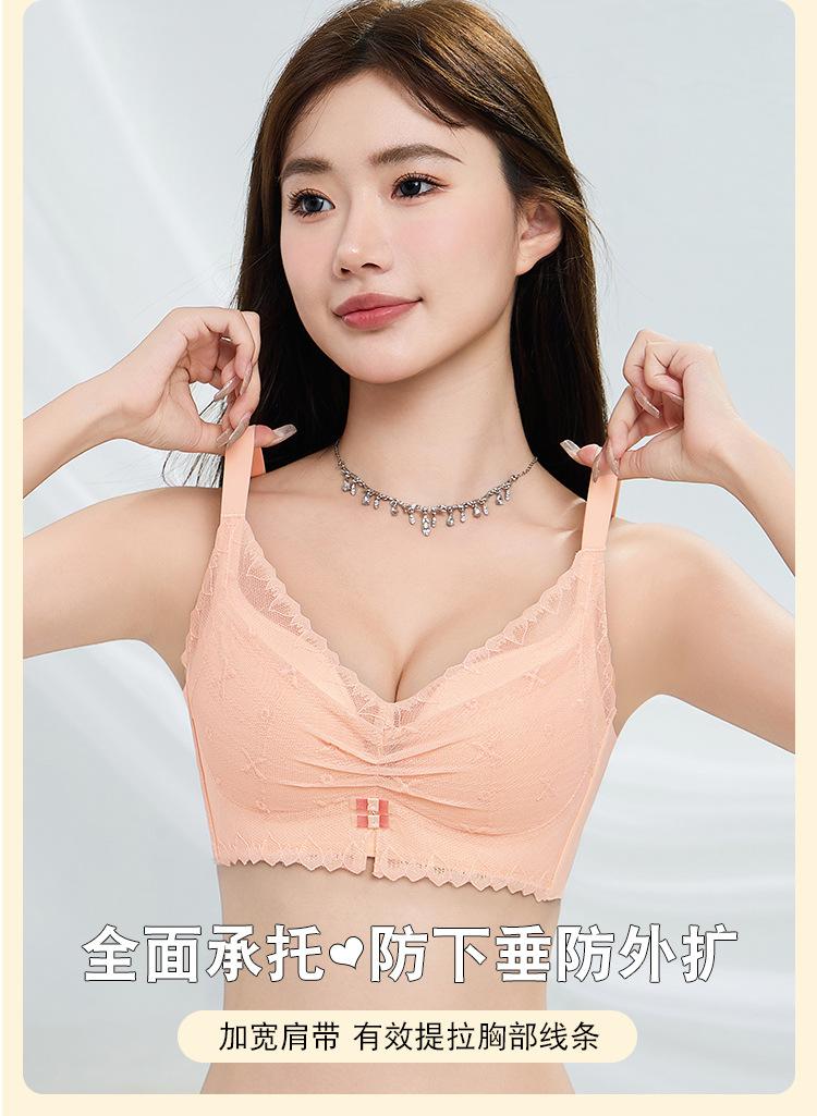 Sujetador de marca fina anticaída con copas grandes ajustables sin aros para mujer, con fruncido de pecho pequeño, para verano