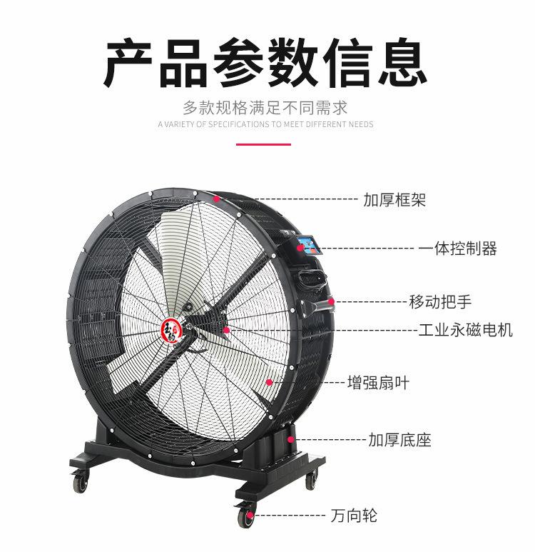 Ventilador industrial de piso de alta potencia para taller, almacén, fábrica, ventilador manual, ventilador grande móvil
