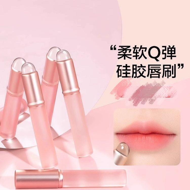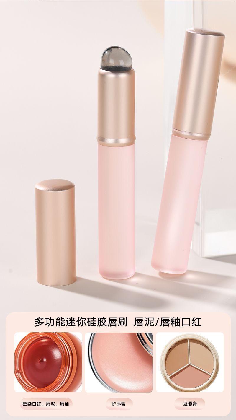 Pincel de Labios de Silicona Pincel para Lodo Labial Pincel para Lápiz Labial Pincel de Cabeza Redonda para Labios Pincel para Labios con Tapa Cabezal de Pincel Corrector Barra Halo Portátil