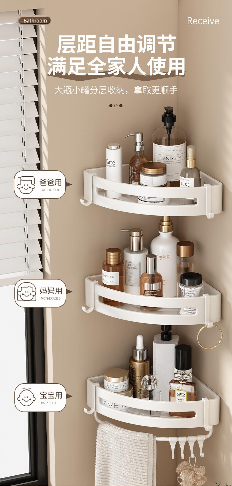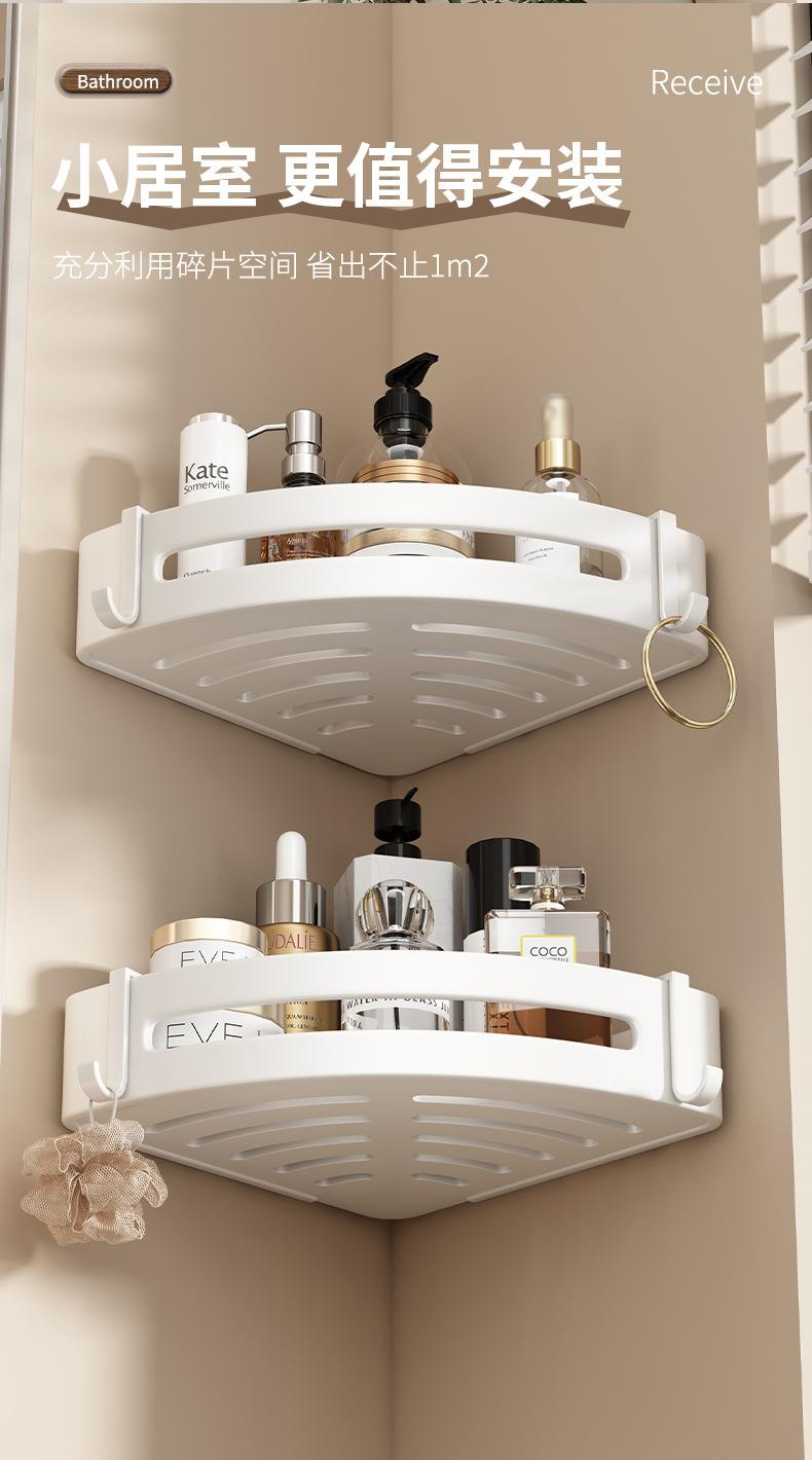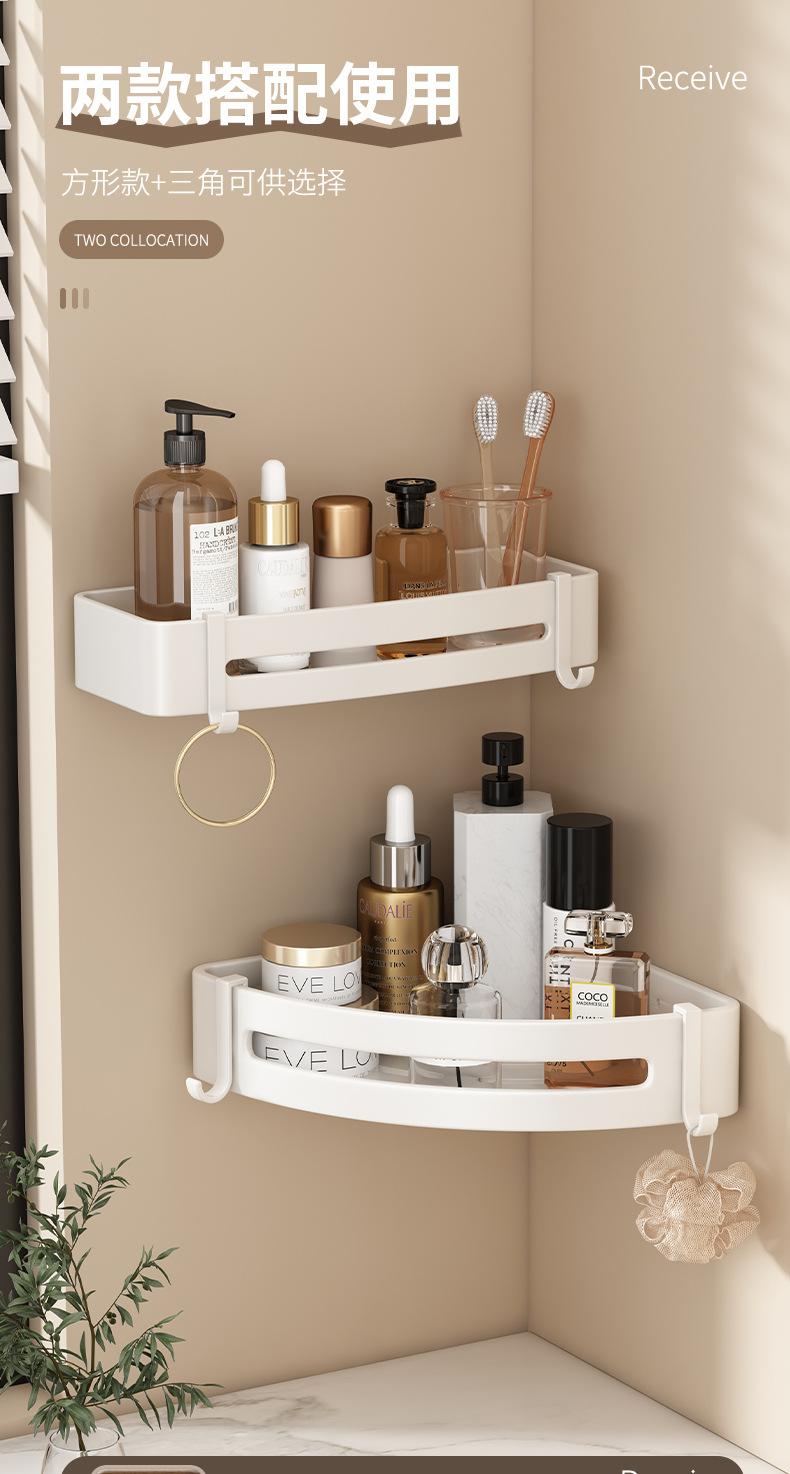 Estante de almacenamiento para baño, estante para inodoro, triángulo, sin perforaciones, para inodoro, baño, ducha, esquina, montaje en pared