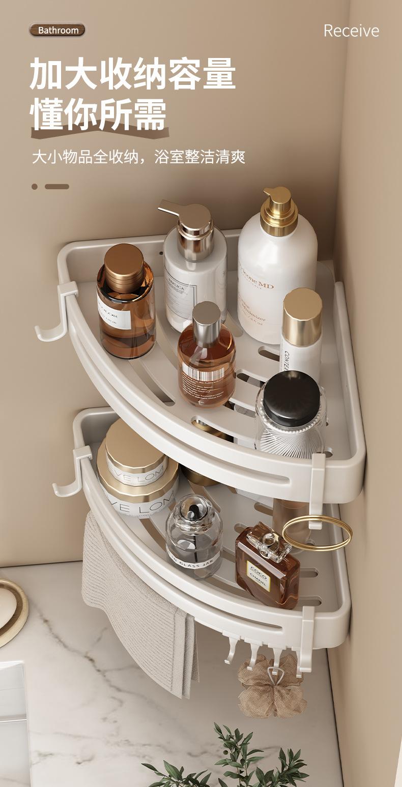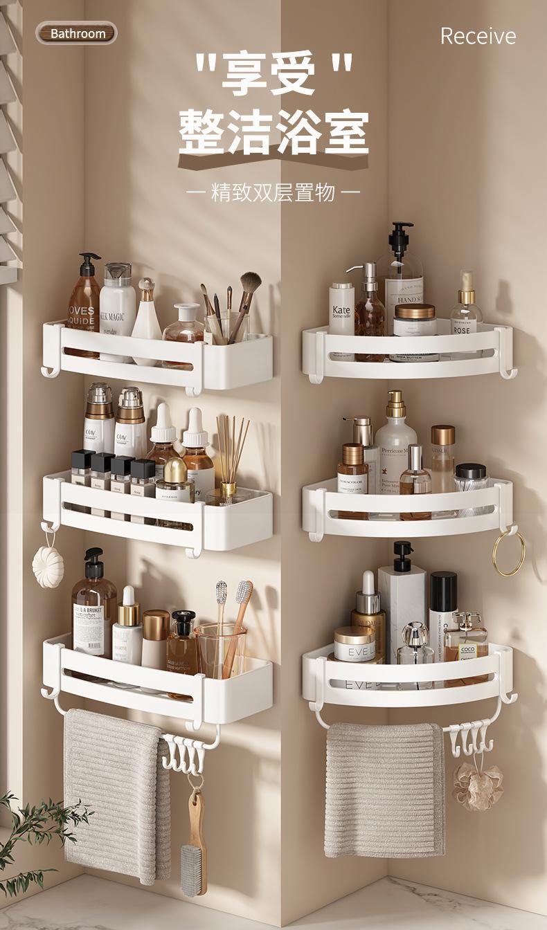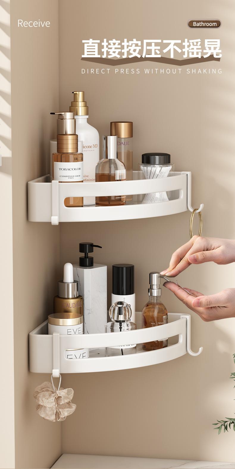 Estante de almacenamiento para baño, estante para inodoro, triángulo, sin perforaciones, para inodoro, baño, ducha, esquina, montaje en pared