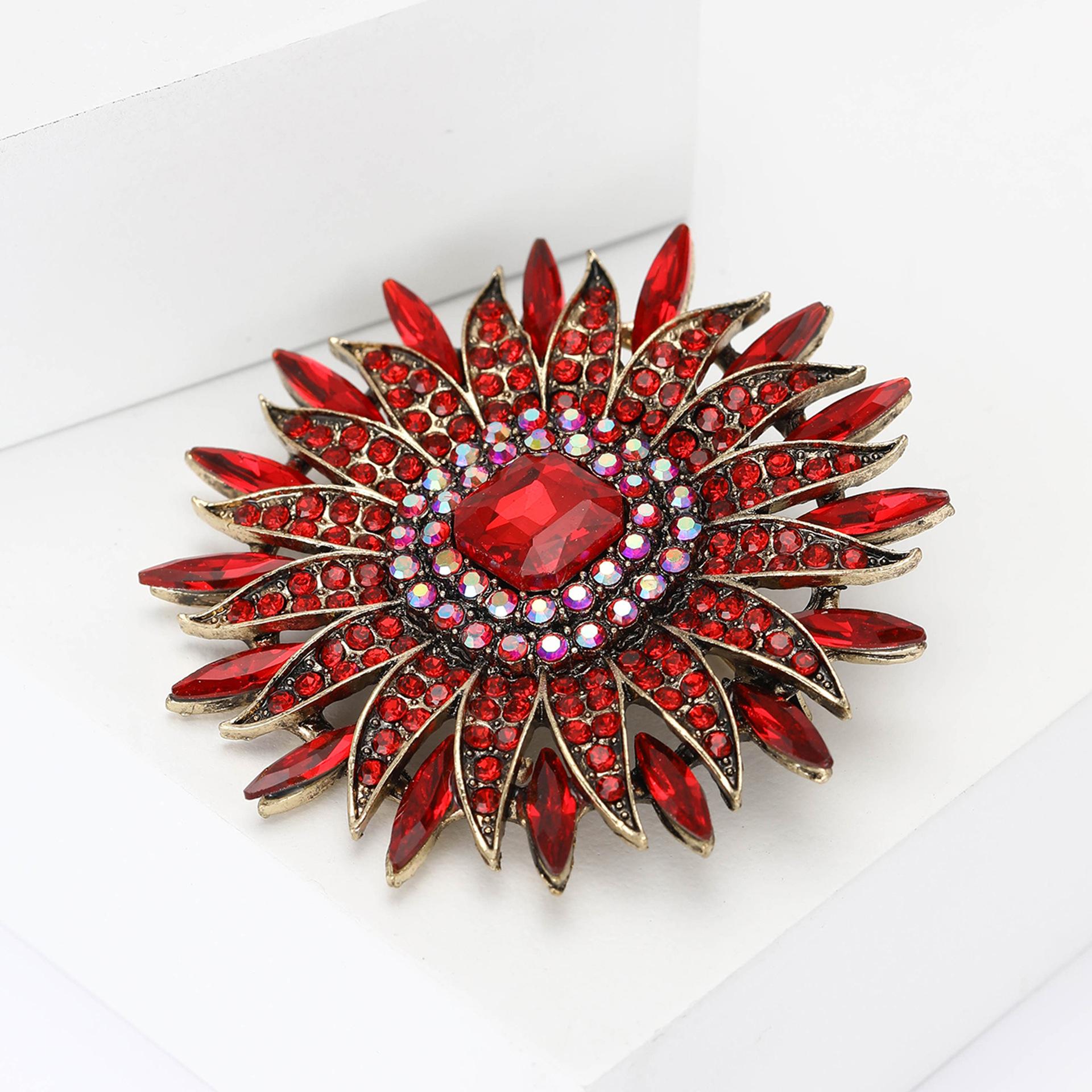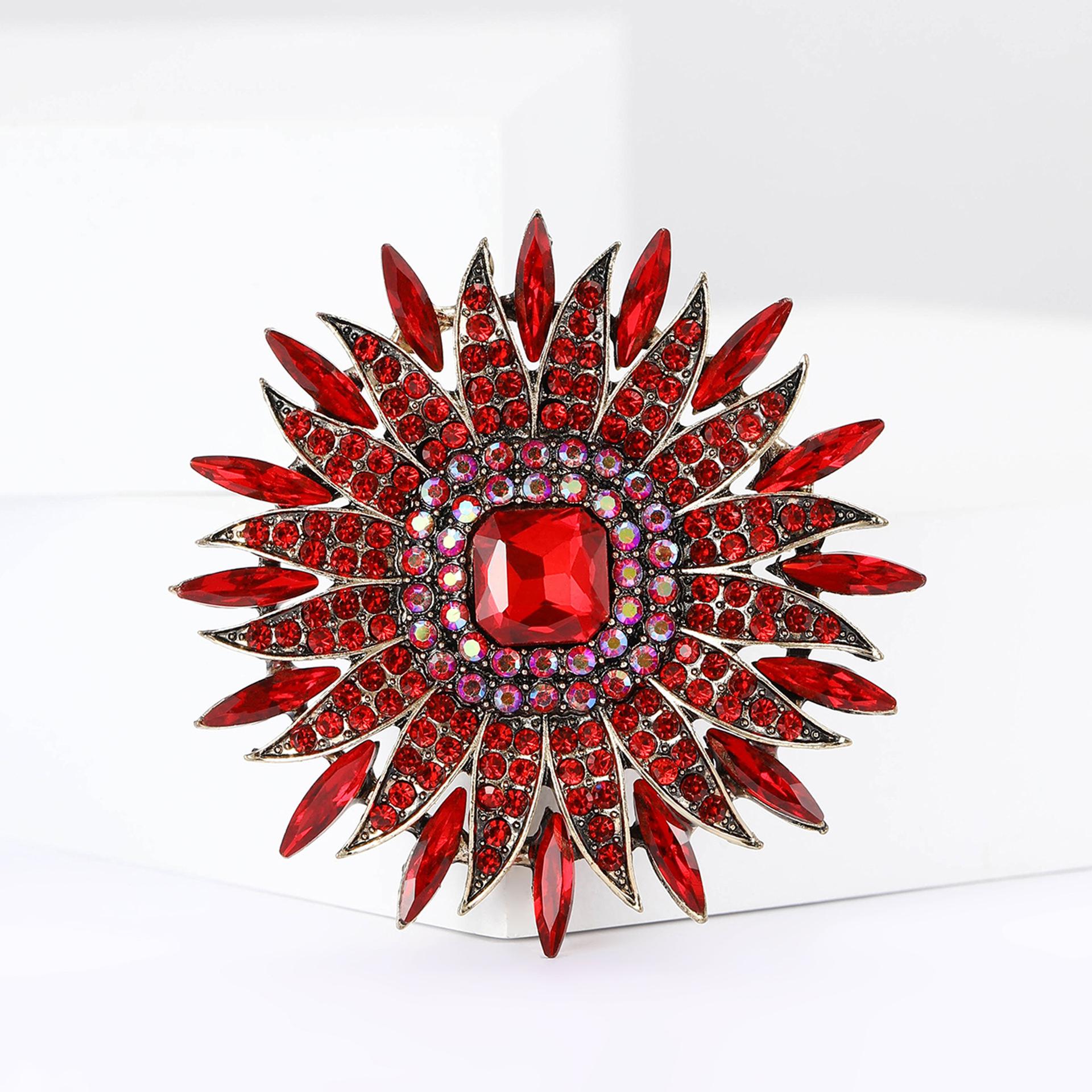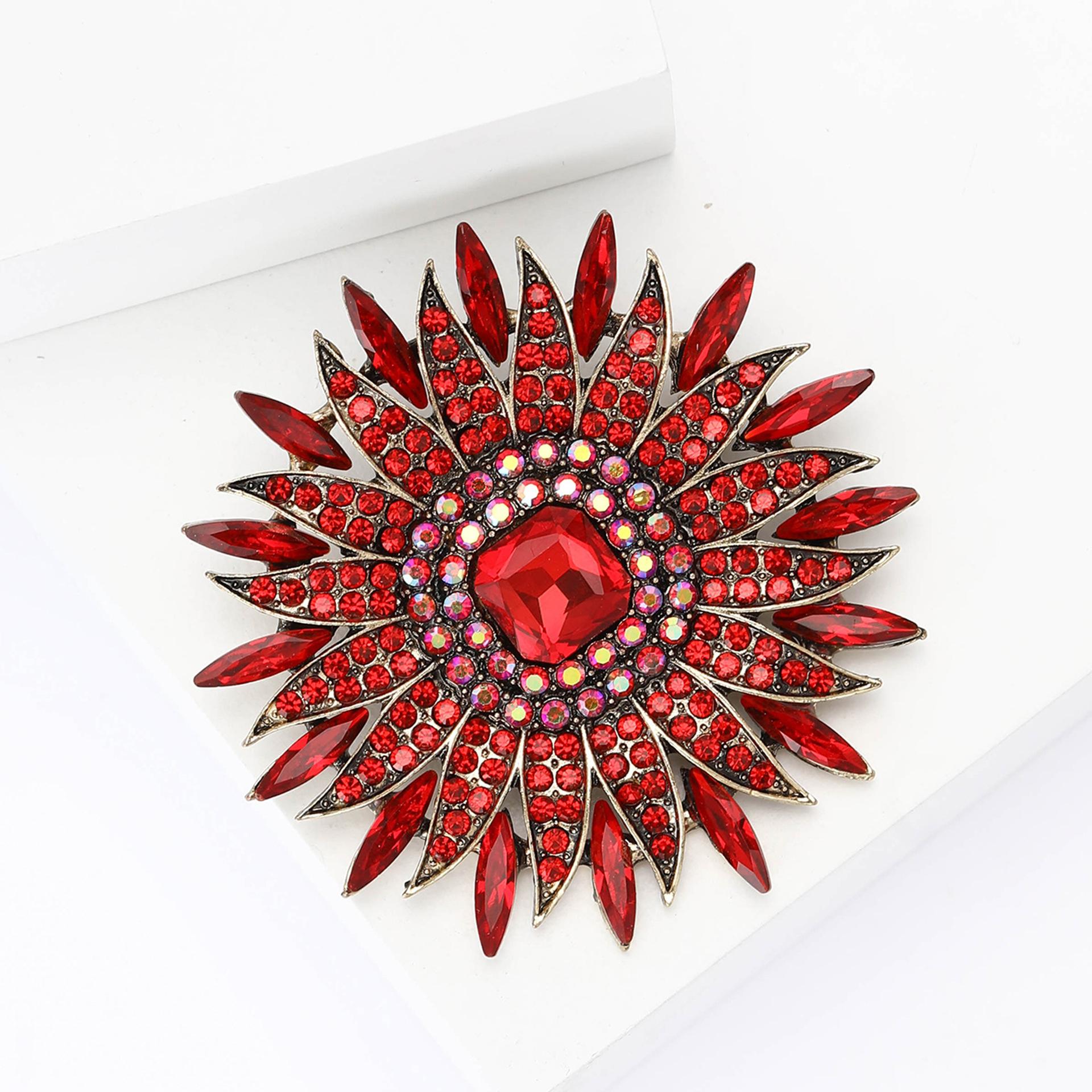 Broche de girasol con diamantes de imitación de aleación para mujer, elegante y lujoso, para vestido, cárdigan, ramillete, alfiler de joyería
