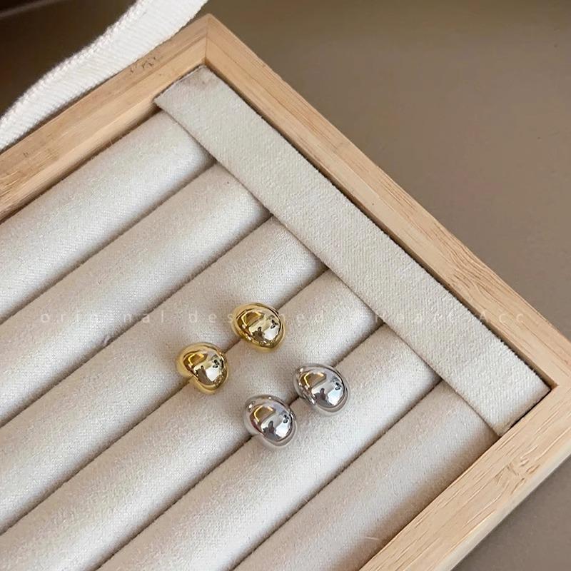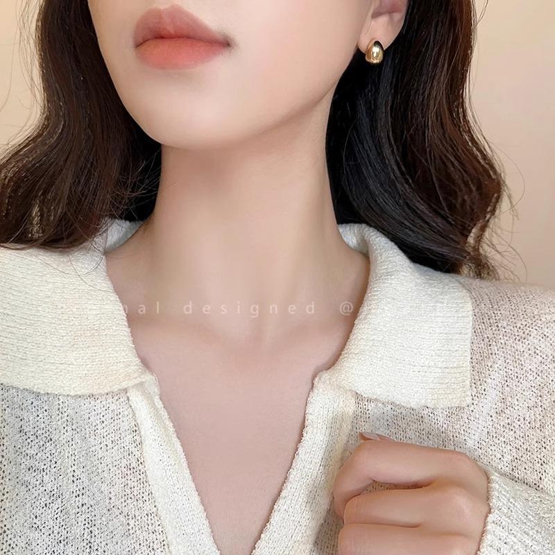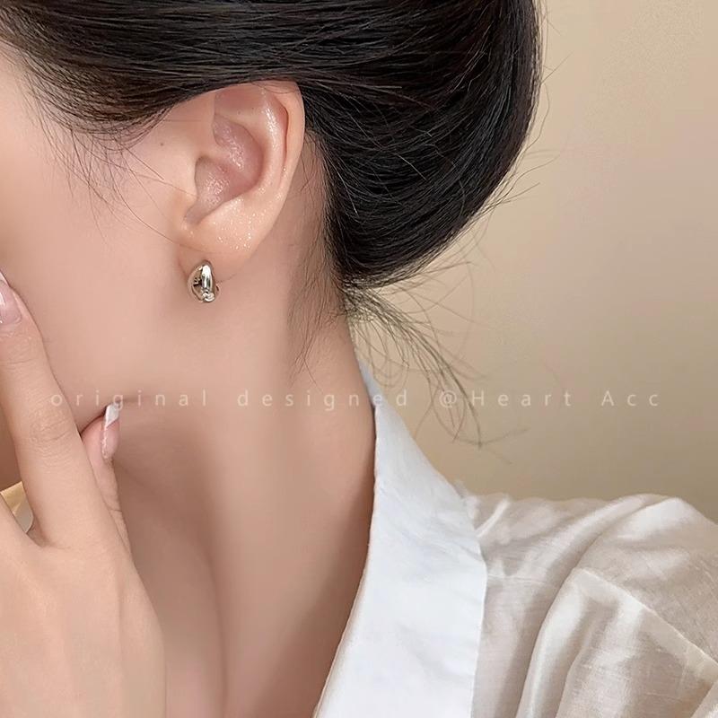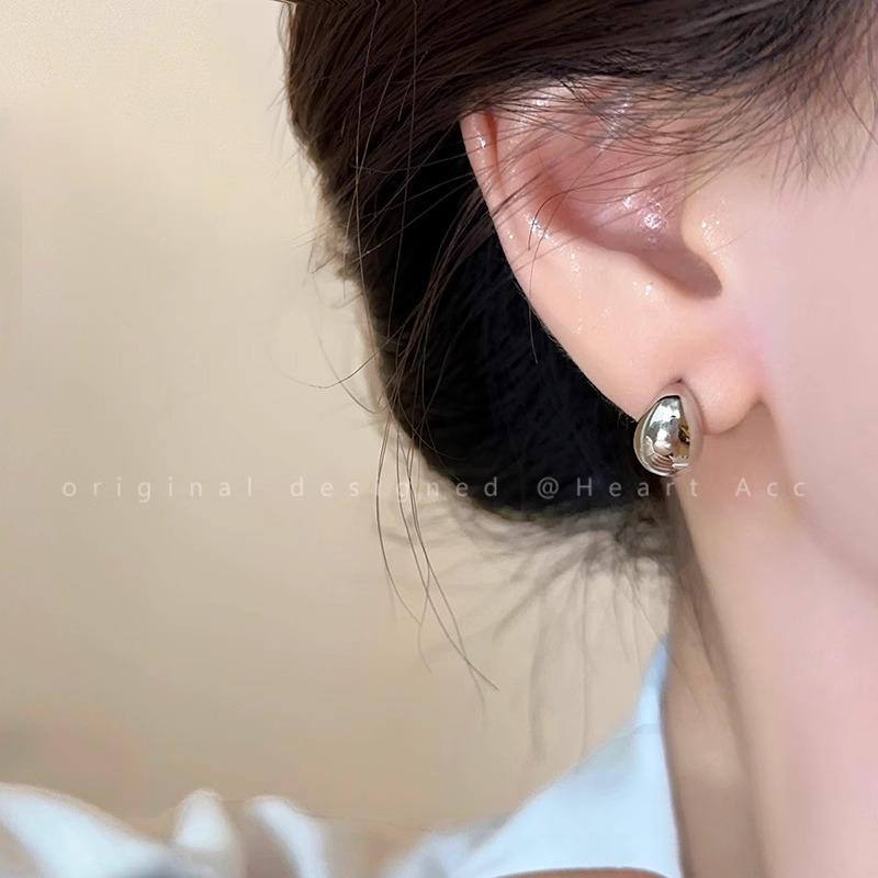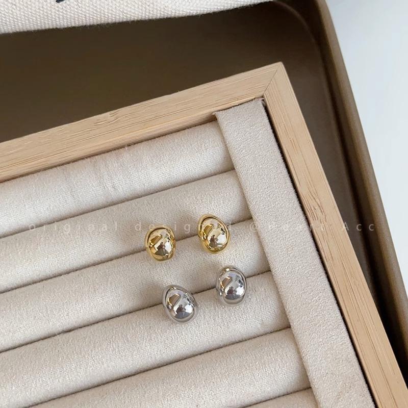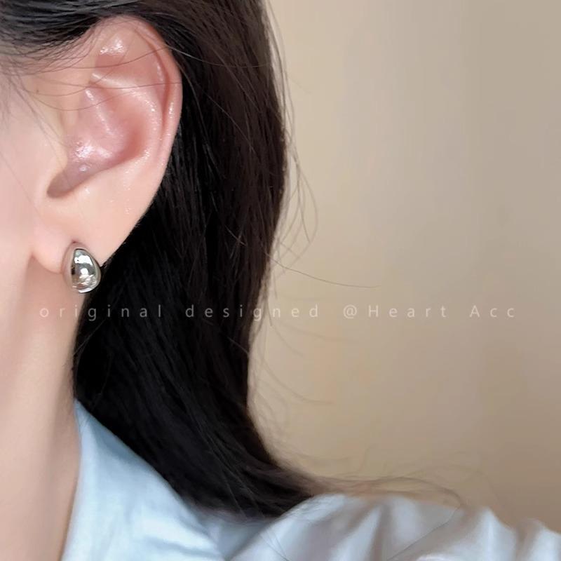 Pendientes de botón de frijol pequeño de plata S925 aguja europea y americana Metal Plata para mujer pendientes de diseño simple pendientes de temperamento estilo frío