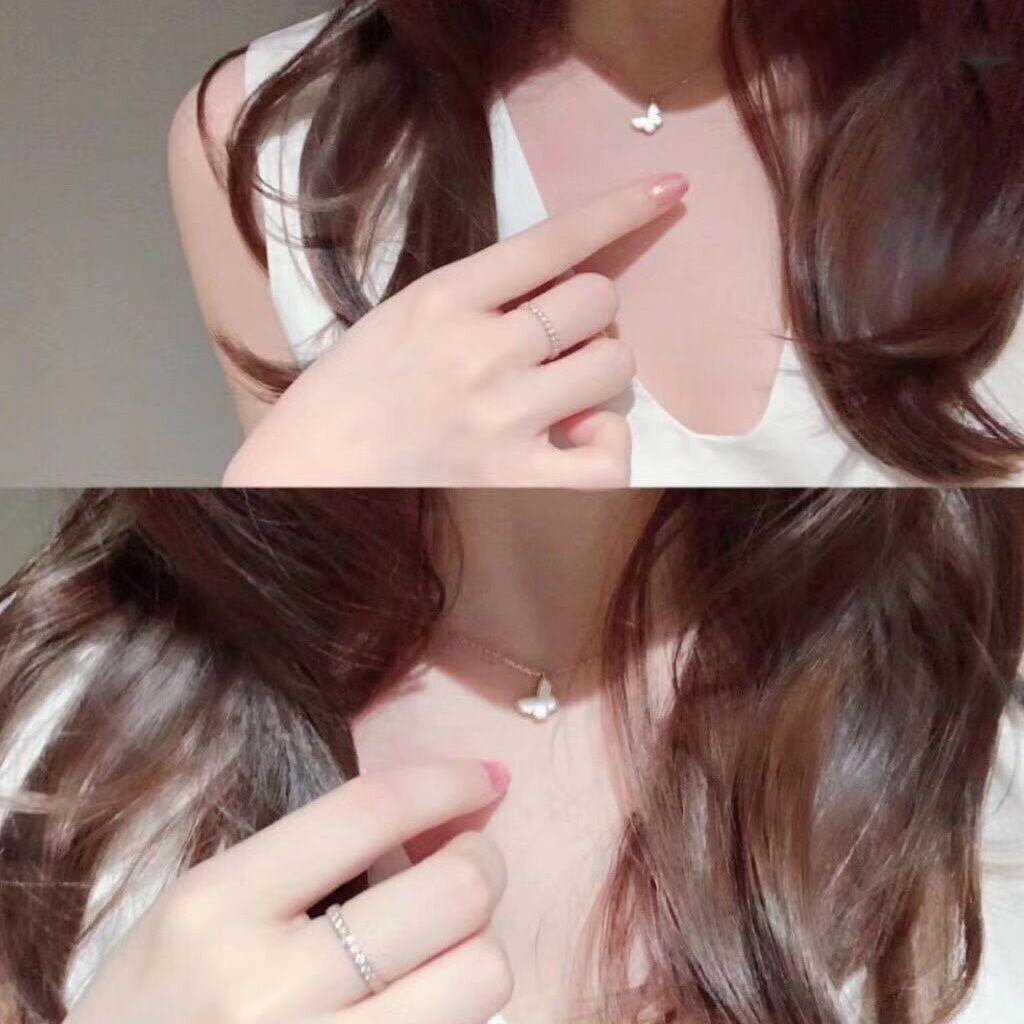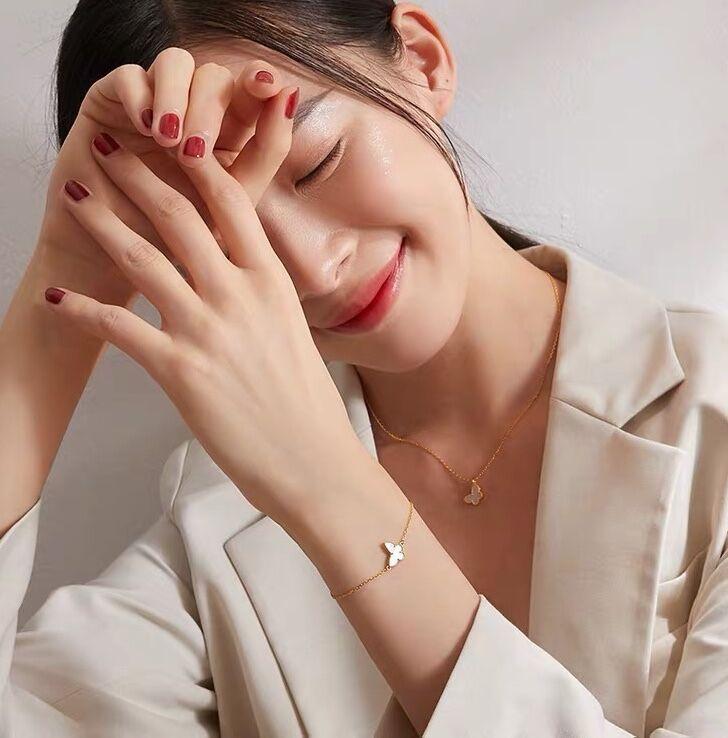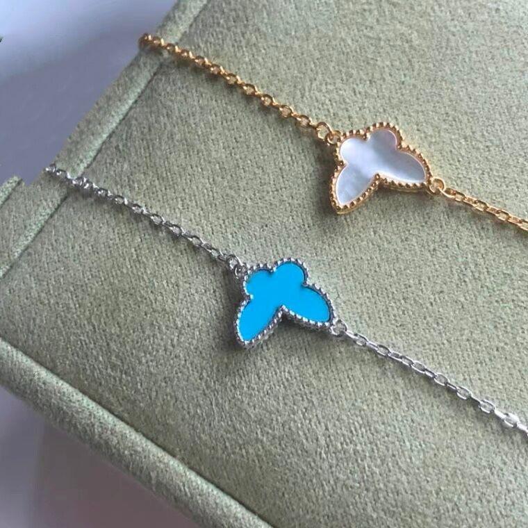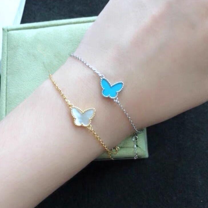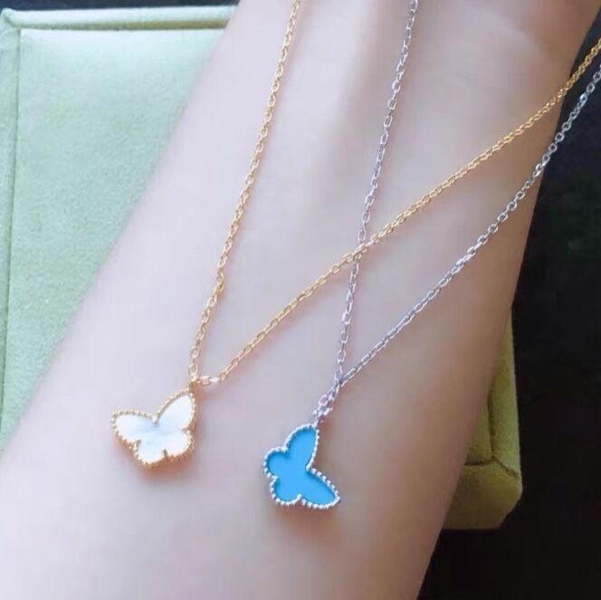 Collar Mariposa Fanjia Plata de Ley 925 Chapado en Oro de 18K tamaño pequeño Mini Nácar Blanco Ágata Azul Pulsera Mariposa Colgante para Mujer