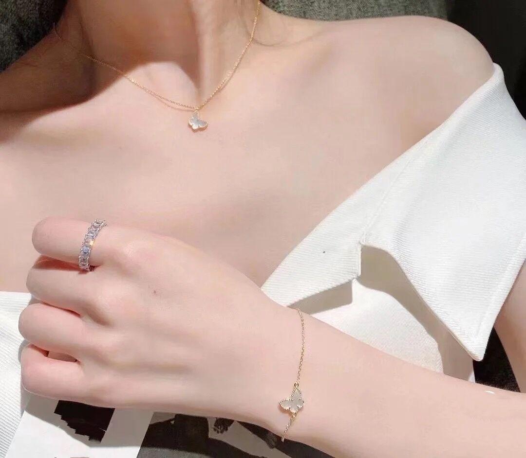 small size White Fritillaria Butterfly Necklace, small size White Fritillaria Butterfly Bracelet, small size B...