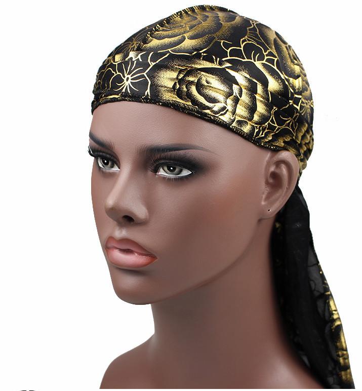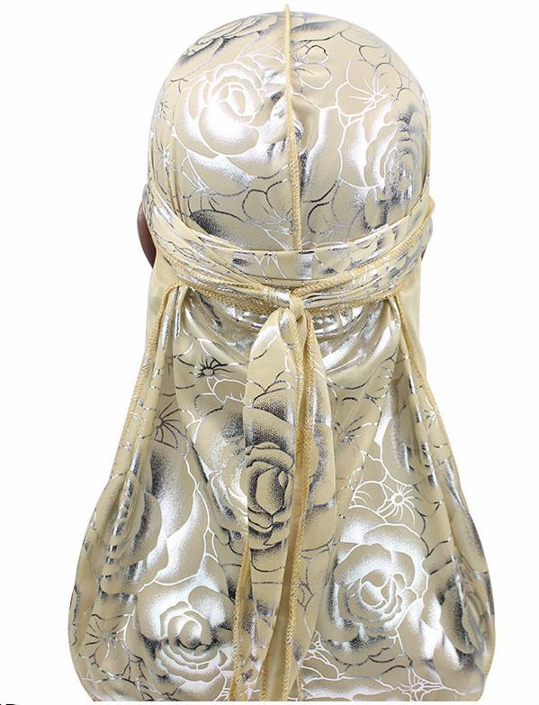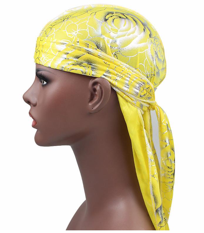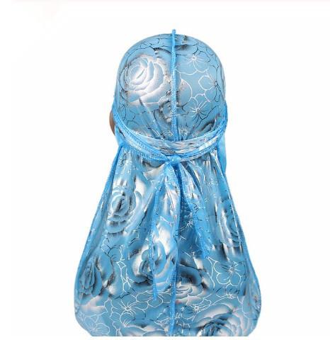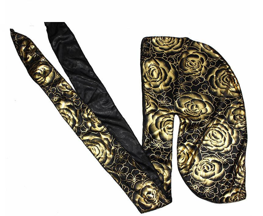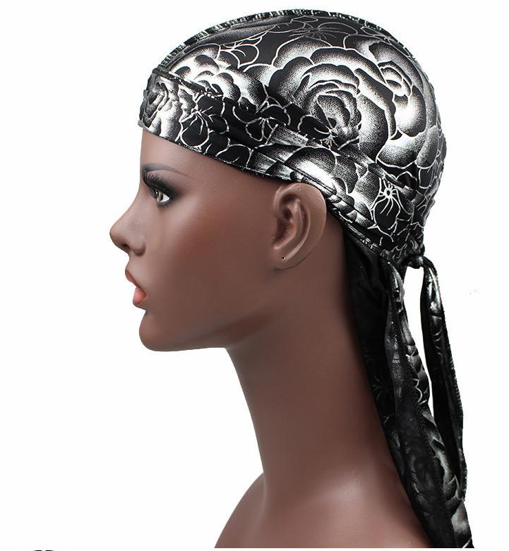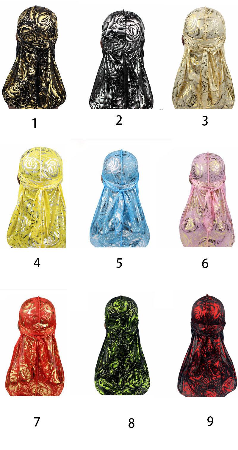 Suministro de Alta Calidad Sombrero de Pirata de Cola Larga Estampado de Rosas Imitación Seda Sombrero de Cola Larga Durag Sedoso Pañuelo para la Cabeza