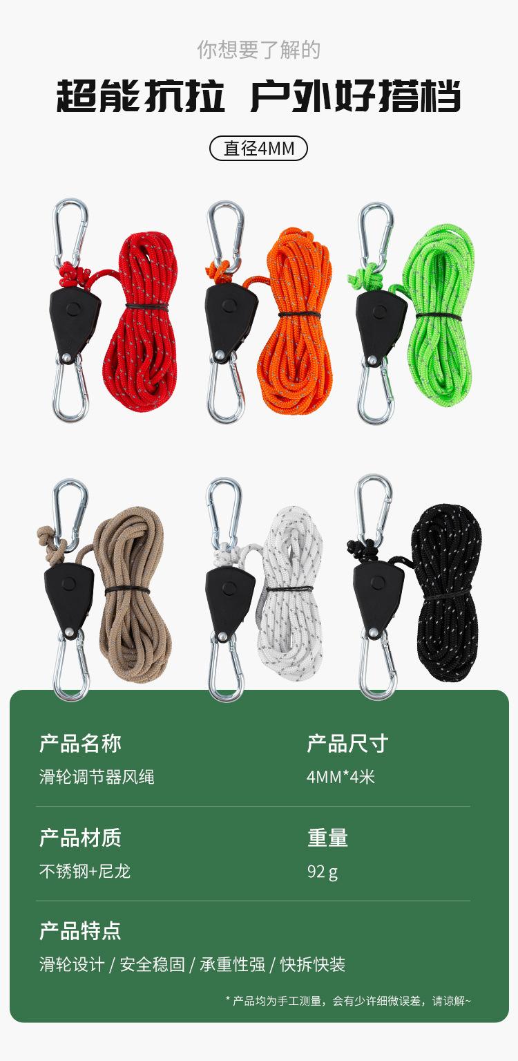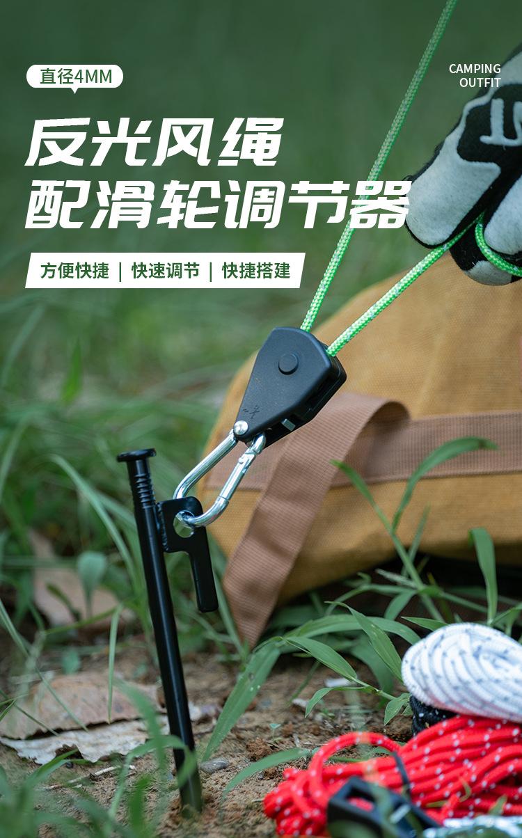 Compra Toldo para acampar al aire libre con cordón resistente al viento, cuerda reflectante de 4 mm de alto, cuerda con hebilla de ajuste de polea ajustable al por mayor en Joom.pro