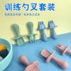 Tenedor cuchara de silicona con mango de madera suplemento alimenticio para bebés vajilla de entrenamiento mango de haya cuchara de silicona alimentación de grado alimenticio para niños