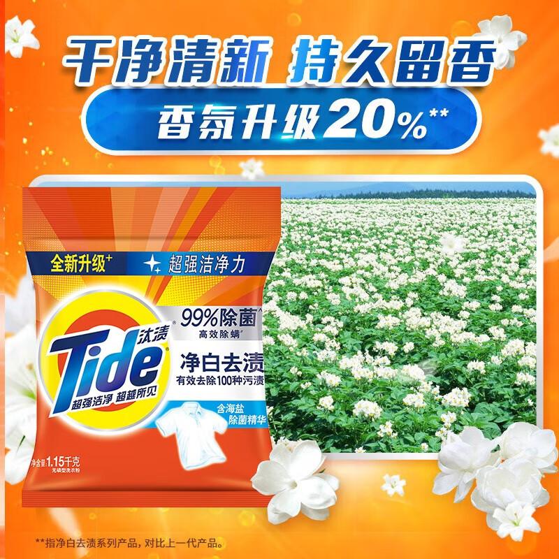 Bolsa de Detergente en Polvo Tide Detergente y Eliminación de Ácaros Blanco Quitamanchas y Eliminación de Aceite Detergente en Polvo Efecto Fuerte Limpio Hogar Eficaz Ropa