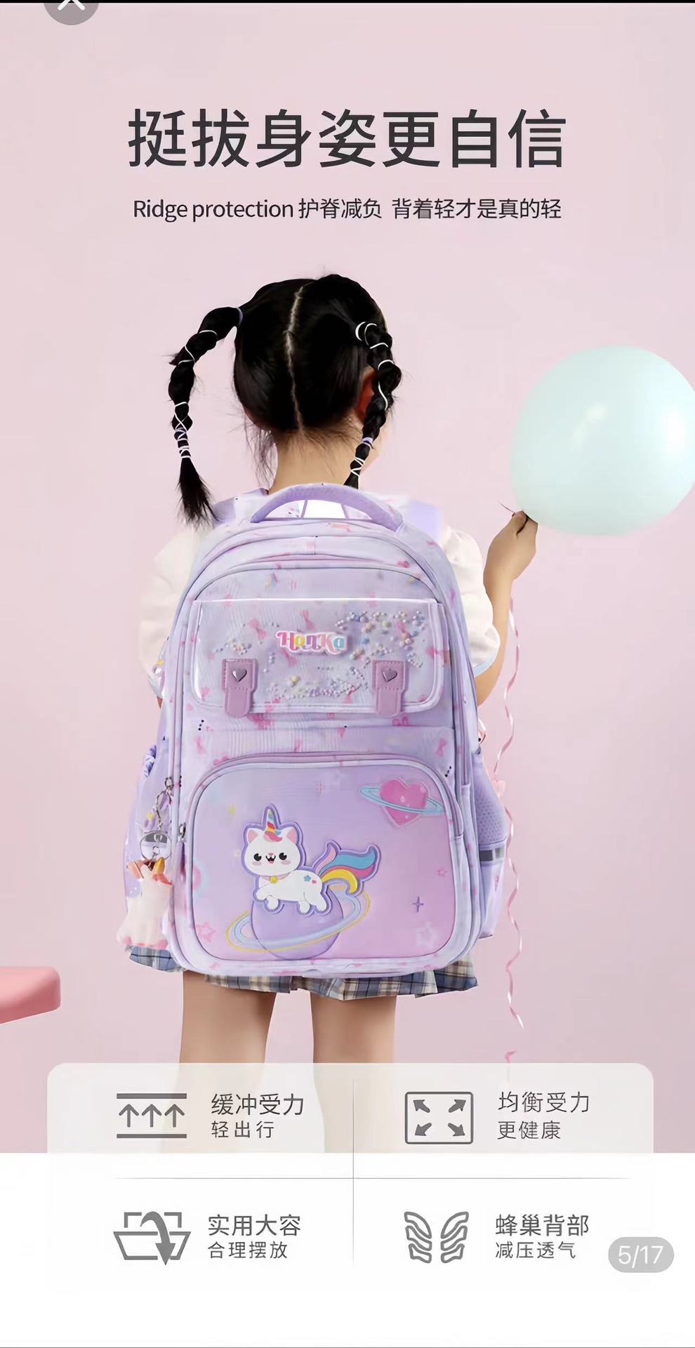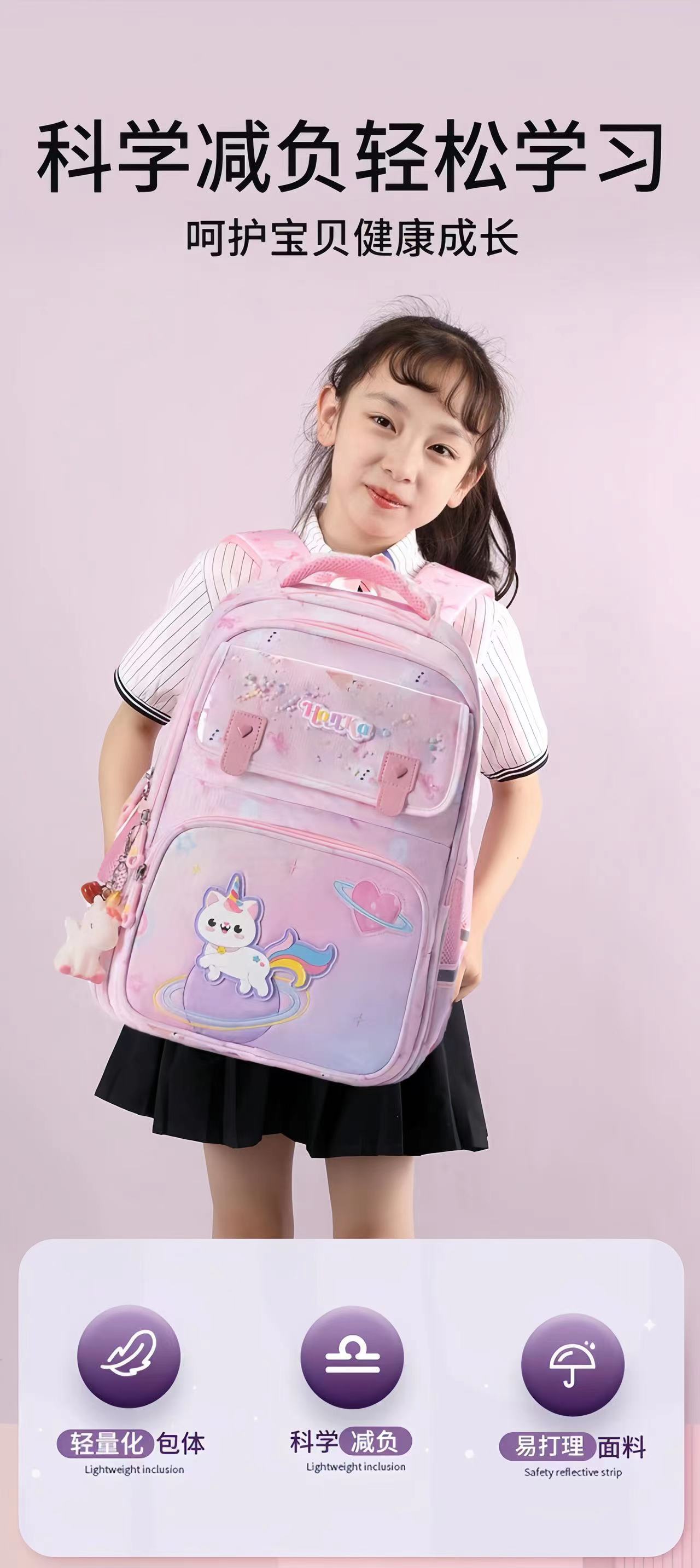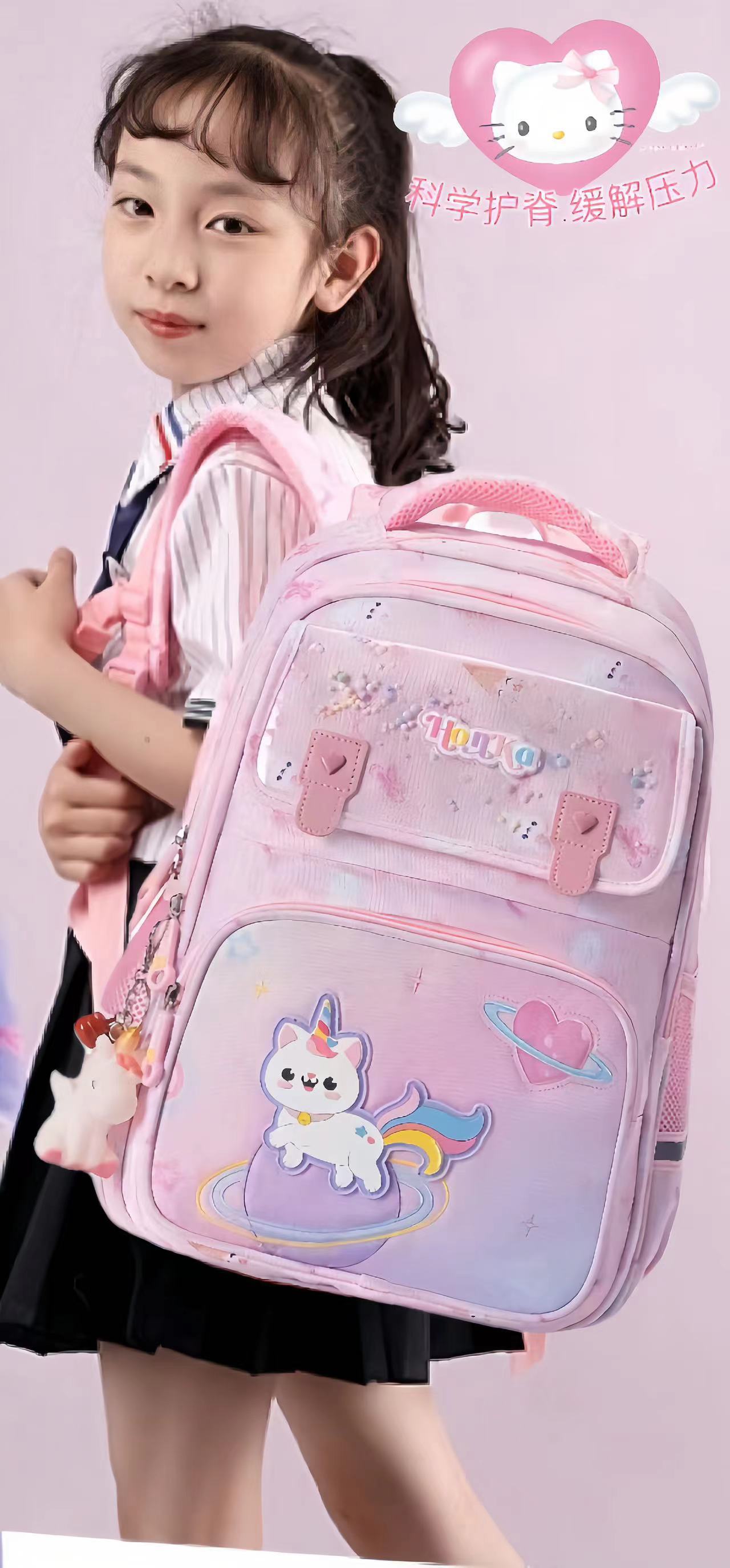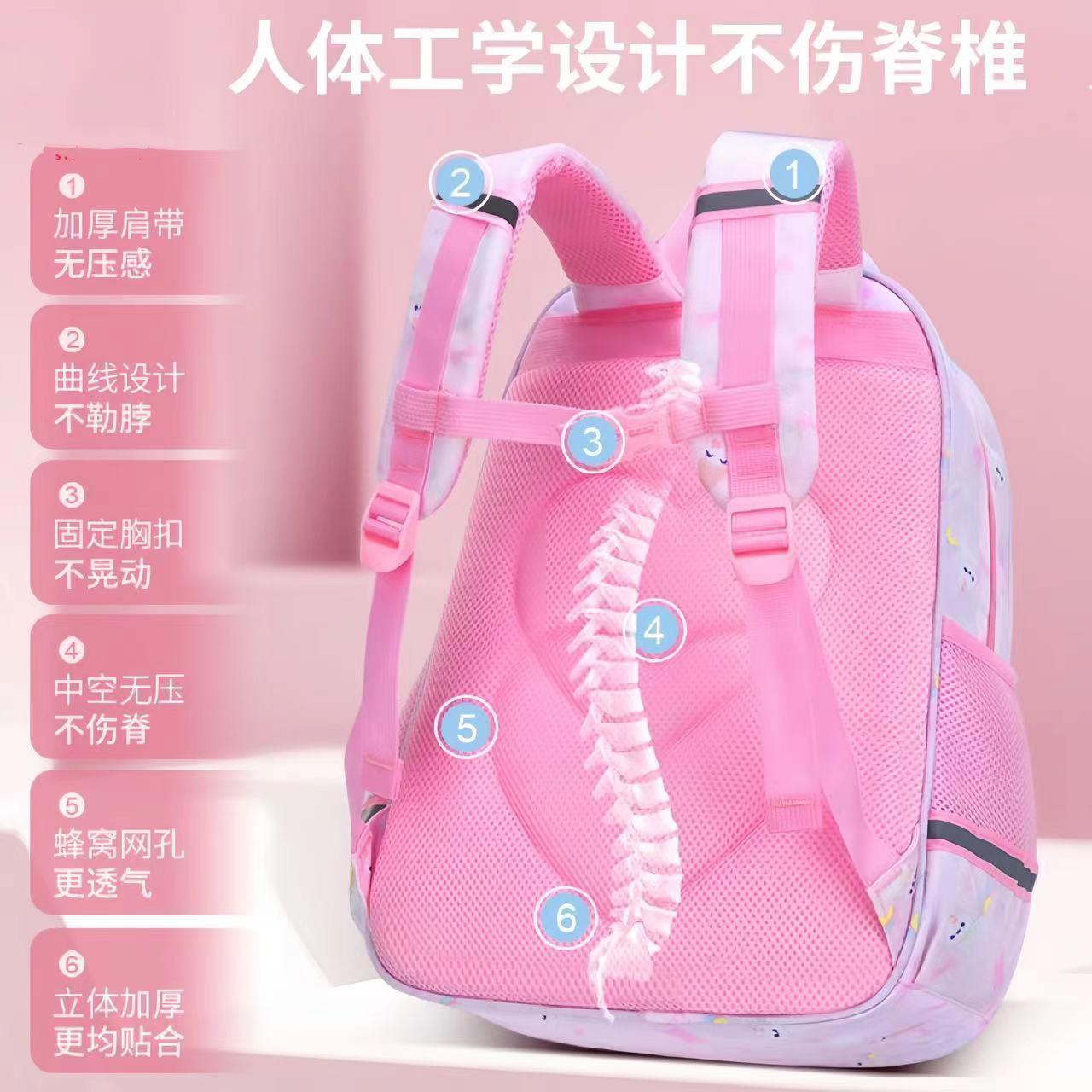 Mochila Escolar de Dibujos Animados para Niña Fresca para Estudiantes de Primaria de Segundo a Quinto Grado Descompresión Protección de la Espalda Mochila de Gran Capacidad con Múltiples Compartimentos