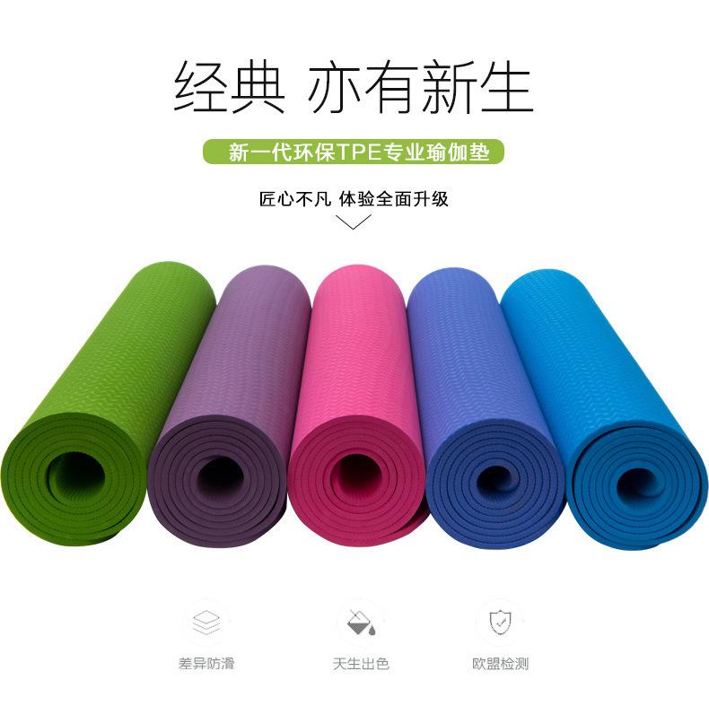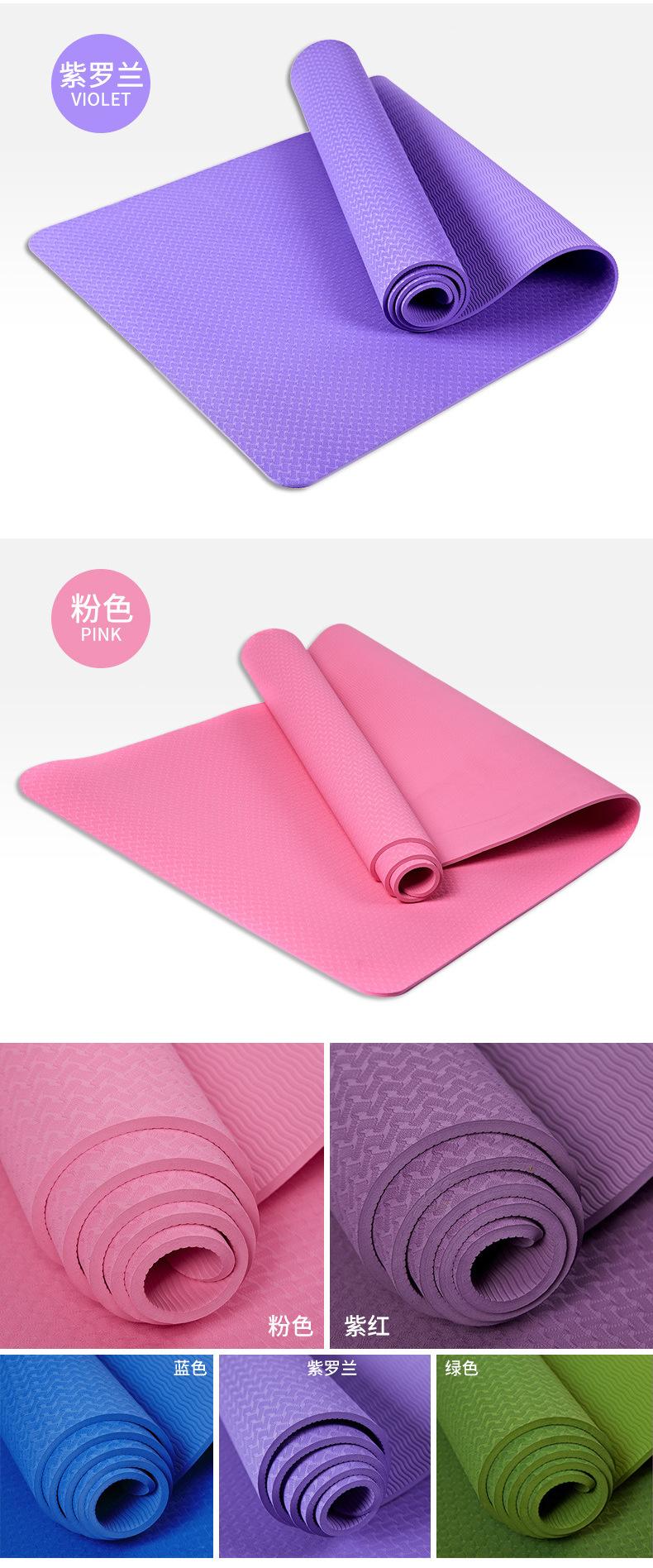 Suministro transfronterizo de esterilla de yoga TPE con absorción de impactos silenciosa, engrosada y ensanchada de 6 mm, antideslizante, para deportes y fitness.