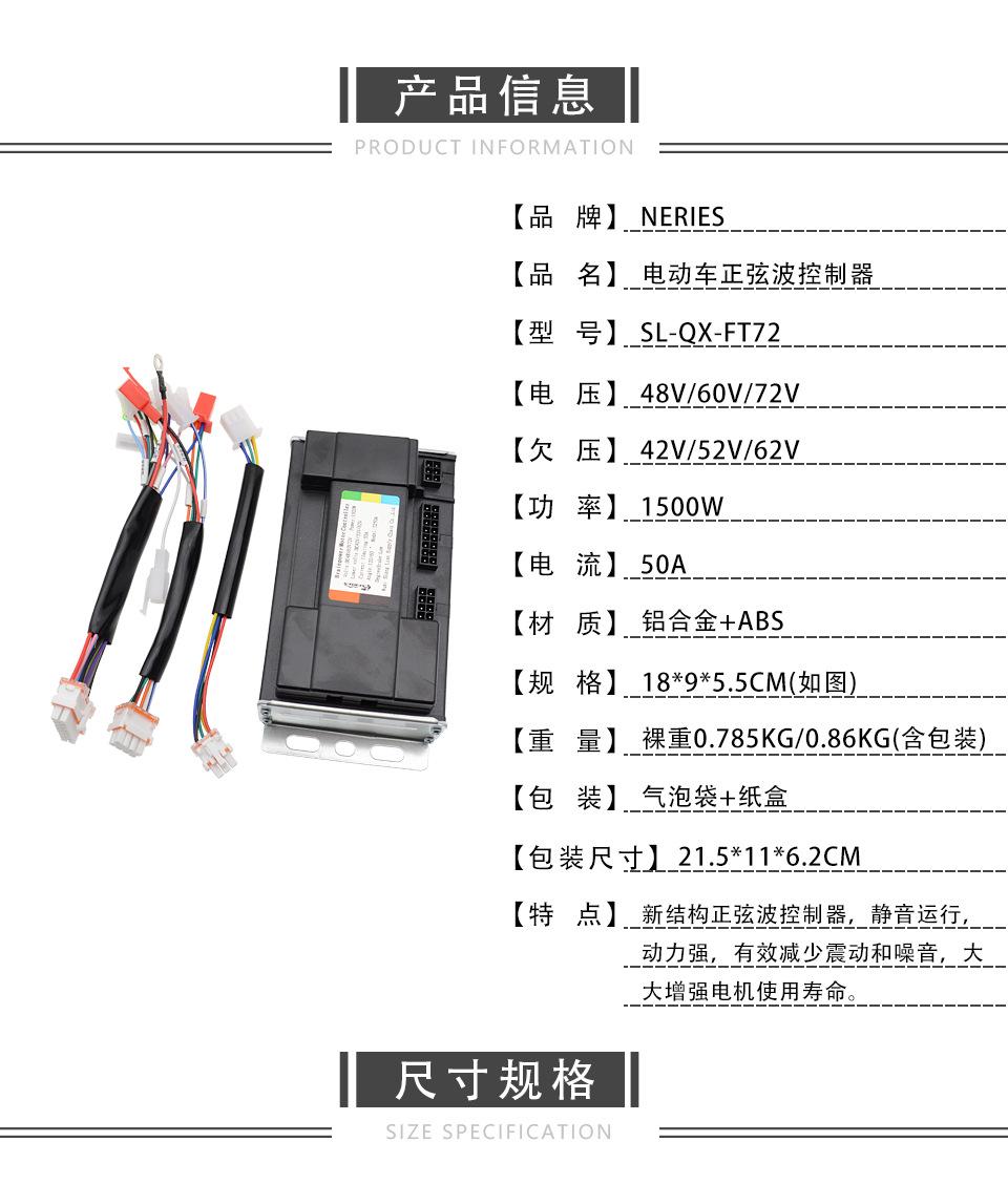 Controlador de velocidad de motor inteligente dividido de 1500 W para batería de coche eléctrico de onda sinusoidal de 48 V, 60 V y 72 V.