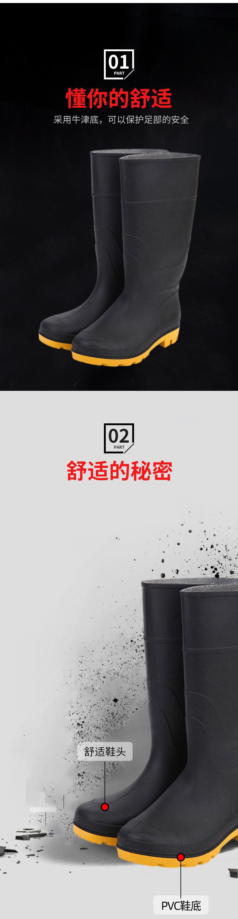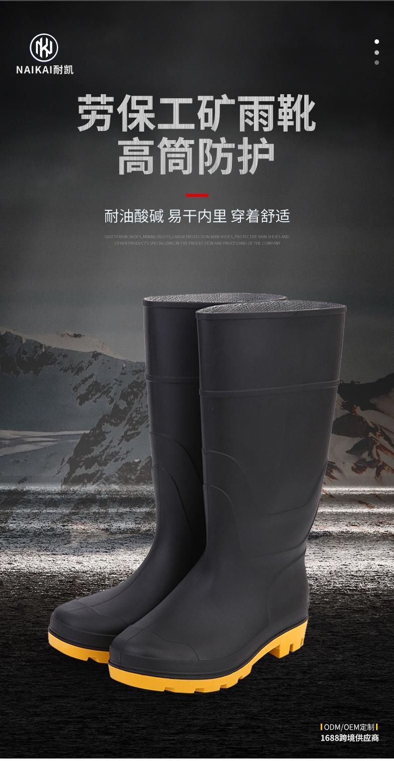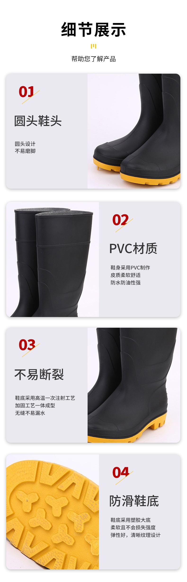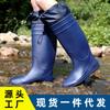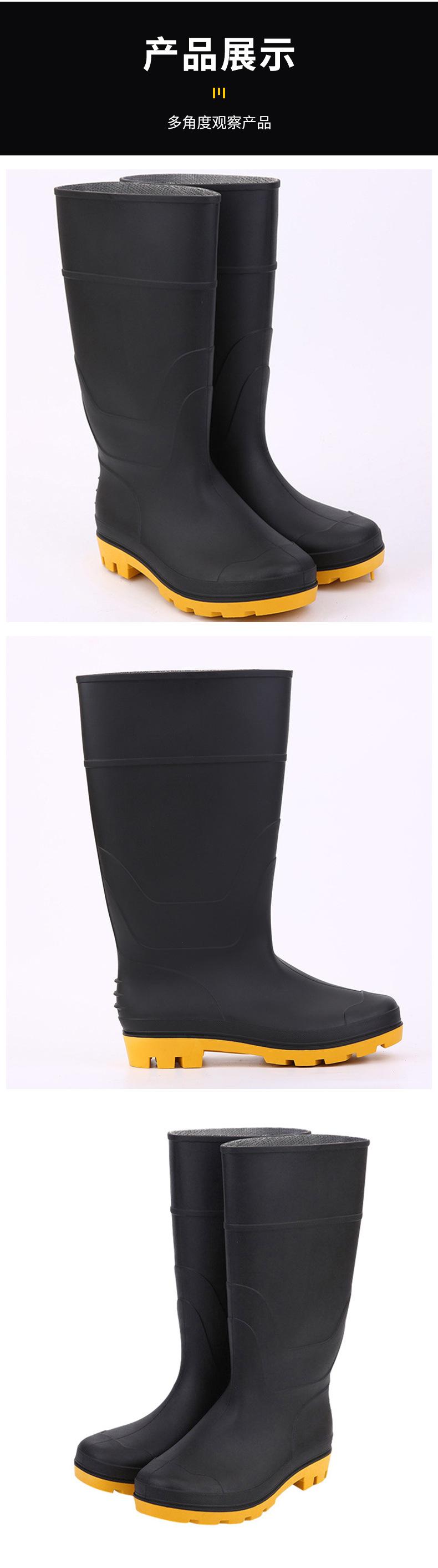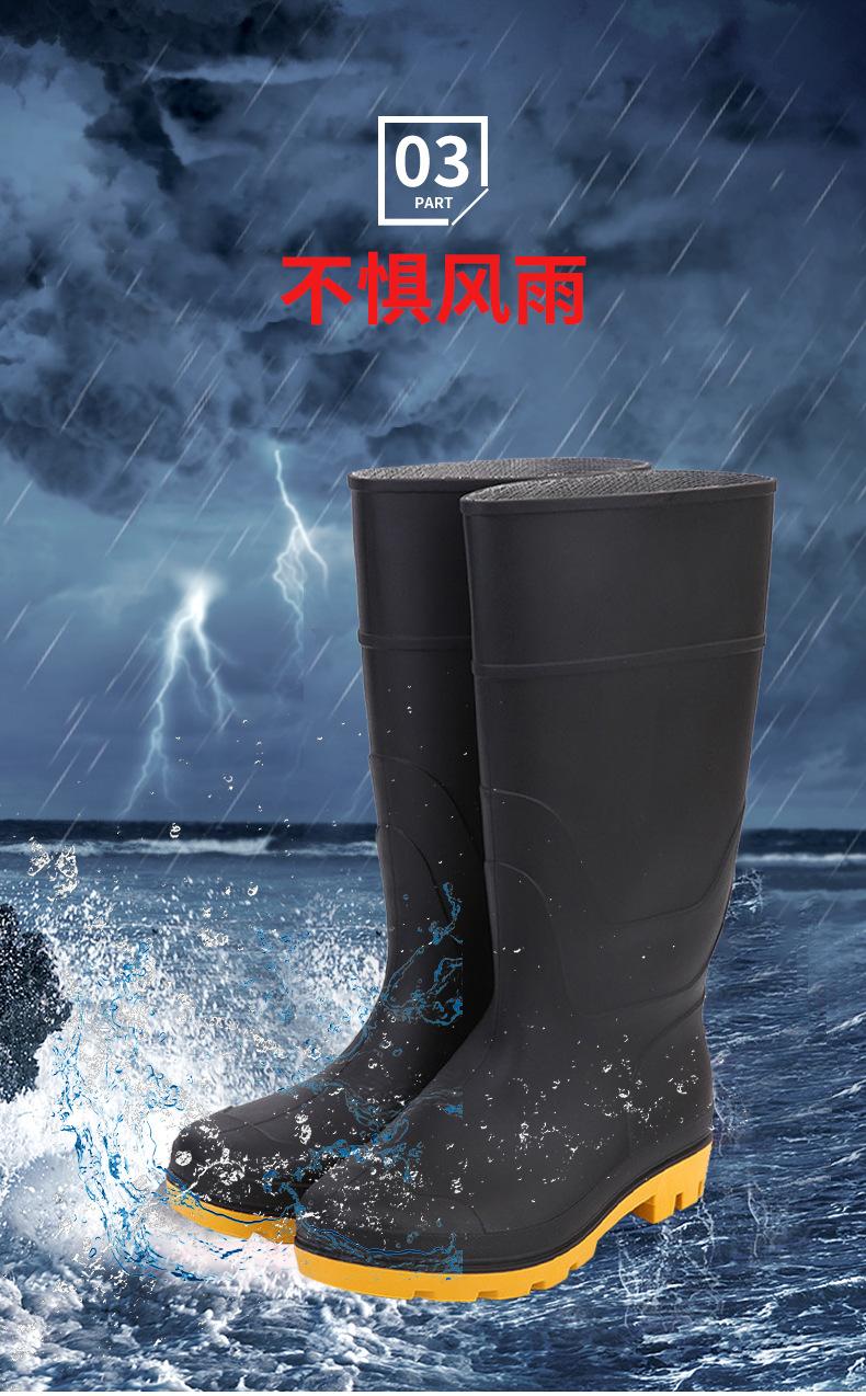 Botas de Lluvia Impermeables Antideslizantes de Tubo Largo de PVC Botas de Lluvia Escarchadas de Protección Laboral Botas Planas de Mina de Punta de Plástico Negro para Hombre