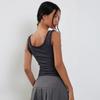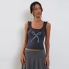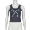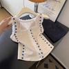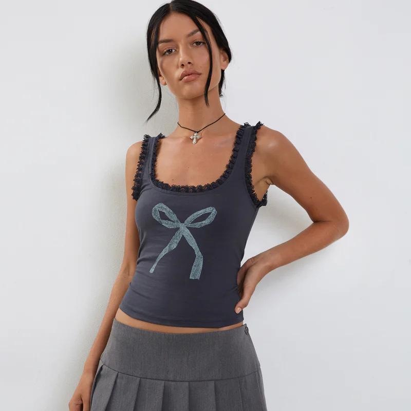 Chaleco de verano con estampado de lazo y encaje en contraste, estilo francés informal