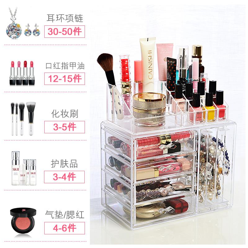 4 layers +2 earrings transparent, 4 drawband earrings hanging +16 lipstick rack, Three-layer earring hanging plate transparent